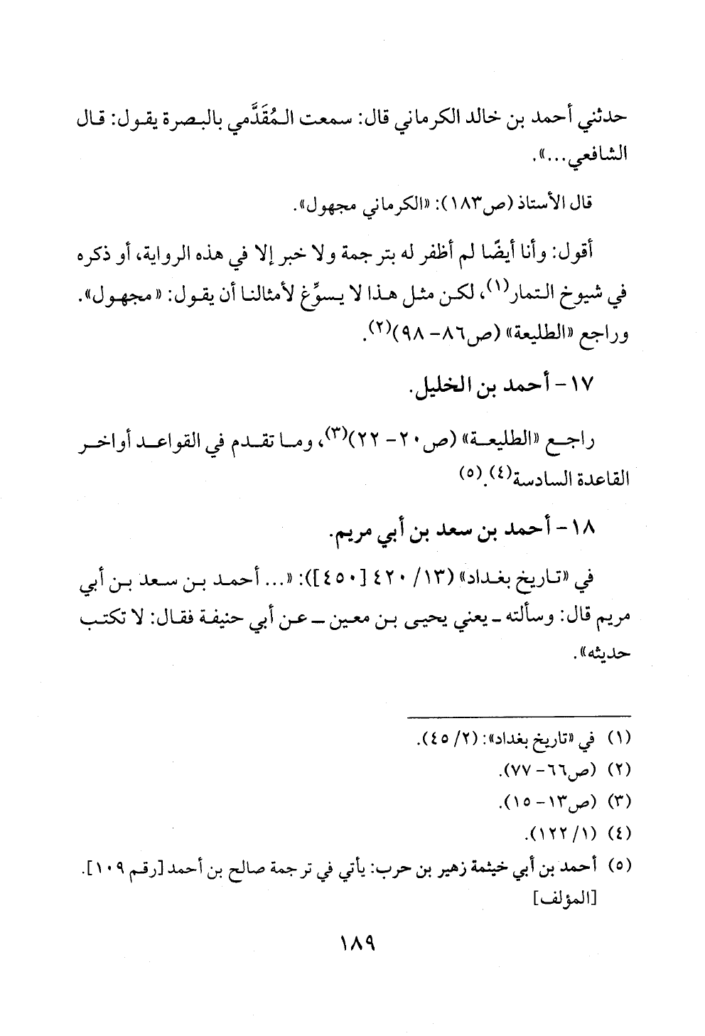 (¬٥) أحمد بن أبي خيثمة زهير بن حرب: يأتي في ترجمة صالح بن أحمد [رقم ١٠٩]. [المؤلف]