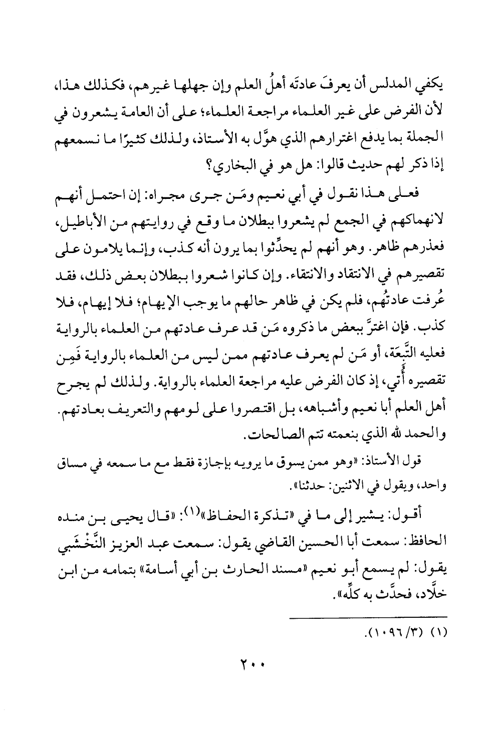 فعلى هذا نقول في أبي نعيم ومَن جرى مجراه: إن احتمل أنهم لانهماكهم في الجمع لم يشعروا ببطلان ما وقع في روايتهم من الأباطيل، فعذرهم ظاهر. وهو أنهم لم يحدِّثوا بما يرون أنه كذب، وإنما يلامون على تقصيرهم في الانتقاد والانتقاء. وإن كانوا شعروا ببطلان بعض ذلك، فقد عُرفت عادتُهم، فلم يكن في ظاهر حالهم ما يوجب الإيهام؛ فلا إيهام، فلا كذب. فإن اغترَّ ببعض ما ذكروه مَن قد عرف عادتهم من العلماء بالرواية فعليه التَّبِعَة، أو مَن لم يعرف عادتهم ممن ليس من العلماء بالرواية فَمِن تقصيره أُتي، إذ كان الفرض عليه مراجعة العلماء بالرواية. ولذلك لم يجرح أهل العلم أبا نعيم وأشباهه، بل اقتصروا على لومهم والتعريف بعادتهم. والحمد لله الذي بنعمته تتم الصالحات.