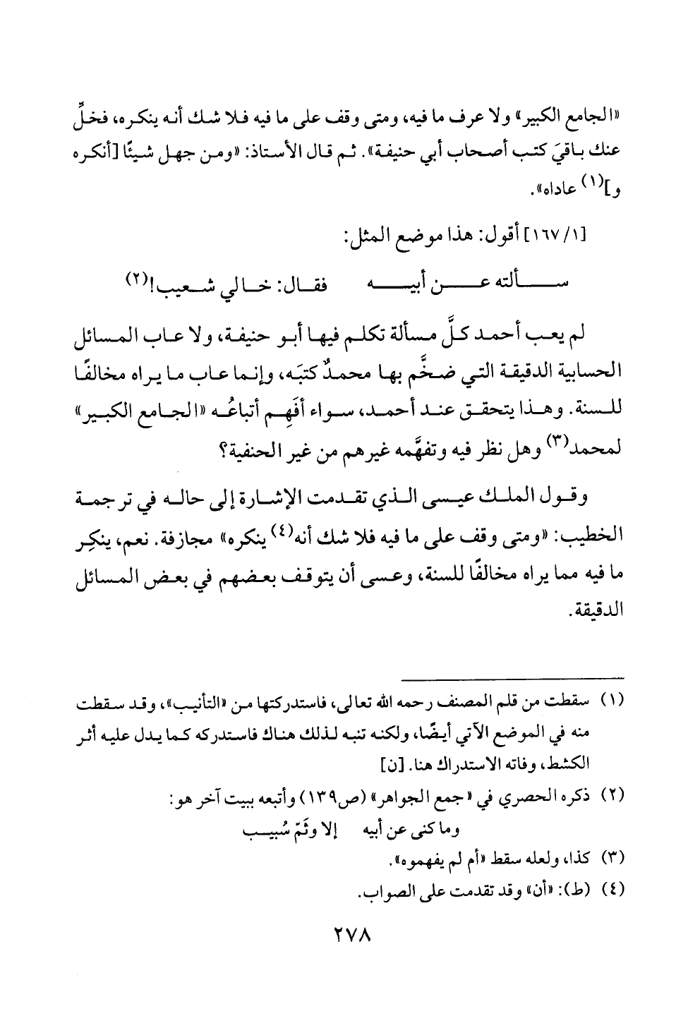 لم يعب أحمد كلَّ مسألة تكلم فيها أبو حنيفة، ولا عاب المسائل الحسابية الدقيقة التي ضخَّم بها محمدٌ كتبَه، وإنما عاب ما يراه مخالفًا للسنة. وهذا يتحقق عند أحمد، سواء أفَهِم أتباعُه «الجامع الكبير» لمحمد (¬٣) وهل نظر فيه وتفهَّمه غيرهم من غير الحنفية؟
