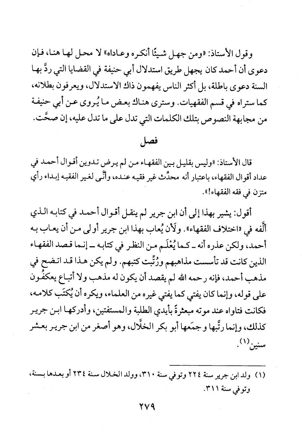(¬١) ولد ابن جرير سنة ٢٢٤ وتوفي سنة ٣١٠، وولد الخلال سنة ٢٣٤ أو بعدها بسنة، وتوفي سنة ٣١١.