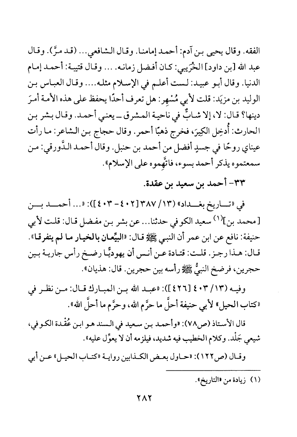 قال الأستاذ (ص ٧٨): «وأحمد بن سعيد في السند هو ابن عُقْدة الكوفي، شيعي جَلْد. وكلام الخطيب فيه شديد، فيلزمه أن لا يعوِّل عليه».