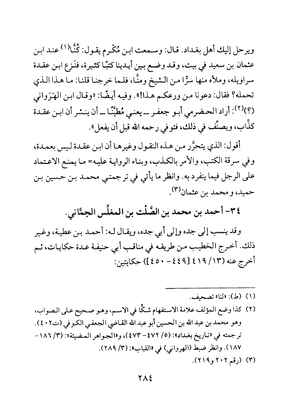٣٤ - أحمد بن محمد بن الصَّلْت بن المغلِّس الحِمَّاني.