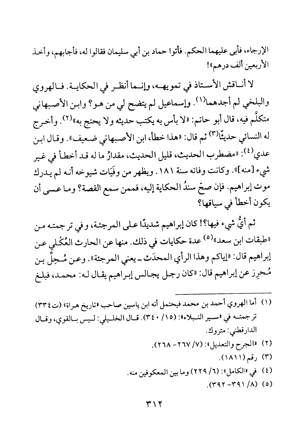 لا أناقش الأستاذ في تمويهه، وإنما أنظر في الحكاية. فالهروي والبلخي لم أجدهما (¬١). وإسماعيل لم يتضح لي من هو؟ وابن الأصبهاني متكلَّم فيه، قال أبو حاتم: «لا بأس به يكتب حديثه ولا يحتج به» (¬٢). وأخرج له النسائي حديثًا (¬٣) ثم قال: «هذا خطأ، ابن الأصبهاني ضعيف». وقال ابن عدي (¬٤): «مضطرب الحديث، قليل الحديث، مقدارُ ما له قد أخطأ في غير شيء [منه]». وكانت وفاته سنة ١٨١. ويظهر من وفَيَات شيوخه أنه لم يدرك موت إبراهيم. فإن صحّ سندُ الحكاية إليه، فممن سمع القصة؟ وما عسى أن يكون أخطأ في سياقها؟