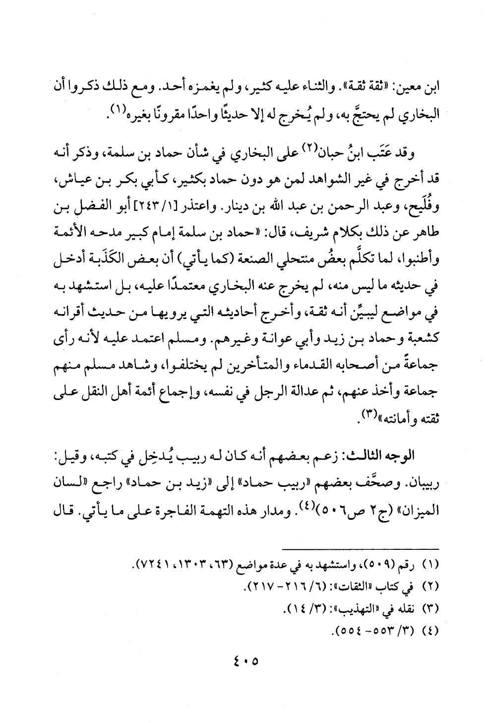 الوجه الثالث: زعم بعضهم أنه كان له ربيب يُدخِل في كتبه، وقيل: ربيبان. وصحَّف بعضهم «ربيب حماد» إلى «زيد بن حماد» راجع «لسان الميزان» (ج ٢ ص ٥٠٦) (¬٤). ومدار هذه التهمة الفاجرة على ما يأتي. قال
