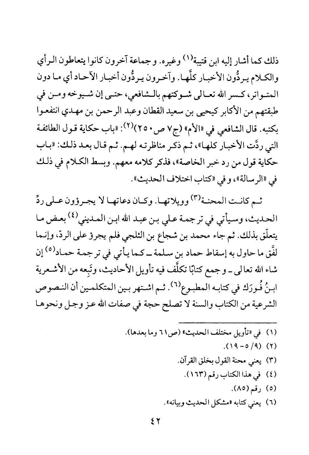 ثم كانت المحنة (¬٣) وويلاتها. وكان دعاتها لا يجرؤون على ردِّ الحديث، وسيأتي في ترجمة علي بن عبد الله ابن المديني (¬٤) بعض ما يتعلّق بذلك. ثم جاء محمد بن شجاع بن الثلجي فلم يجرؤ على الردّ، وإنما لفَّق ما حاول به إسقاط حماد بن سلمة ــ كما يأتي في ترجمة حماد (¬٥) إن شاء الله تعالى ــ وجمع كتابًا تكلَّف فيه تأويل الأحاديث، وتَبِعه من الأشعرية ابنُ فُورَك في كتابه المطبوع (¬٦). ثم اشتهر بين المتكلمين أن النصوص الشرعية من الكتاب والسنة لا تصلح حجة في صفات الله عز وجل ونحوها
