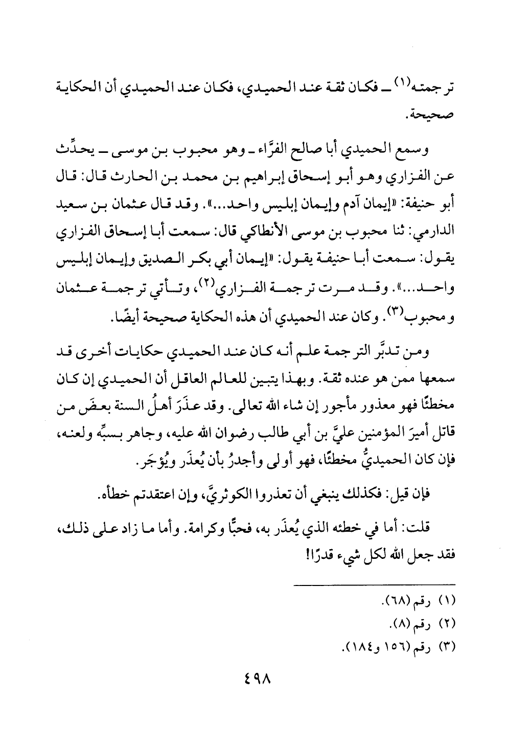 ترجمته (¬١) ــ فكان ثقة عند الحميدي، فكان عند الحميدي أن الحكاية صحيحة.