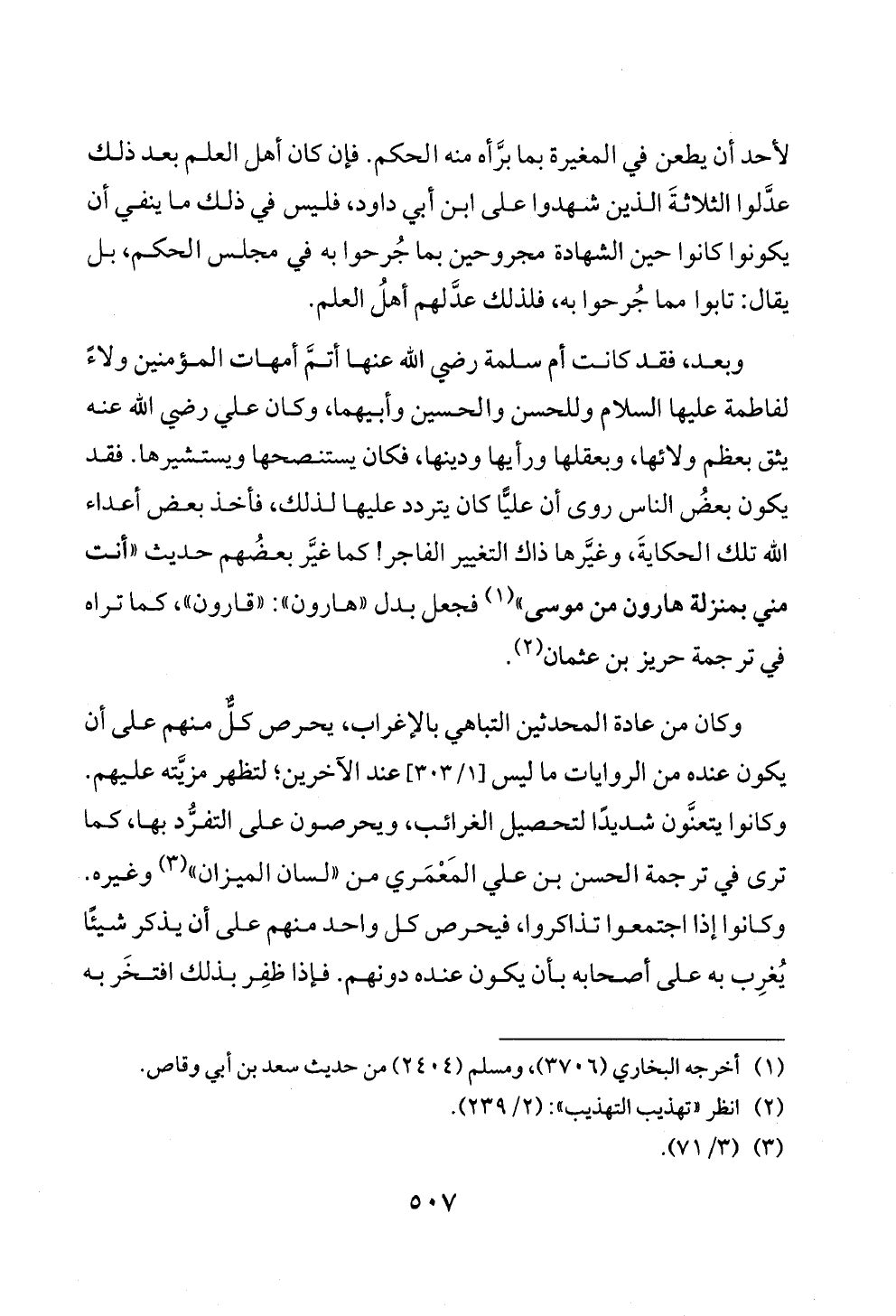 وبعد، فقد كانت أم سلمة رضي الله عنها أتمَّ أمهات المؤمنين ولاءً لفاطمة عليها السلام وللحسن والحسين وأبيهما، وكان علي رضي الله عنه يثق بعظم ولائها، وبعقلها ورأيها ودينها، فكان يستنصحها ويستشيرها. فقد يكون بعضُ الناس روى أن عليًّا كان يتردد عليها لذلك، فأخذ بعض أعداء الله تلك الحكايةَ، وغيَّرها ذاك التغيير الفاجر! كما غيَّر بعضُهم حديث «أنت مني بمنزلة هارون من موسى» (¬١) فجعل بدل «هارون»: «قارون»، كما تراه في ترجمة حريز بن عثمان (¬٢).