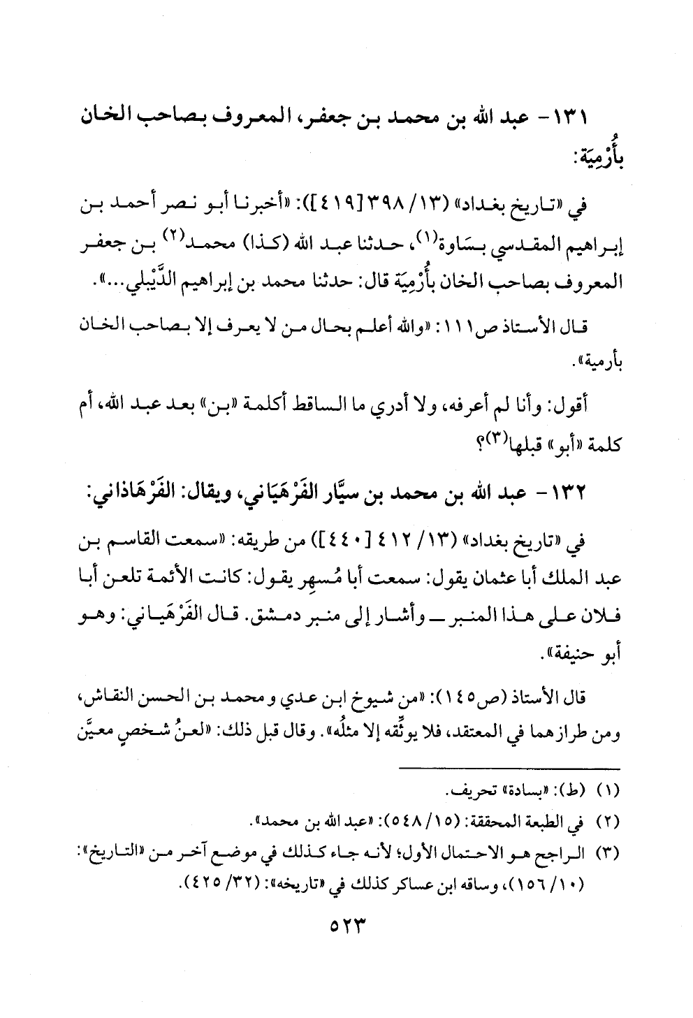 ١٣١ - عبد الله بن محمد بن جعفر، المعروف بصاحب الخان بأُرْمِيَة: