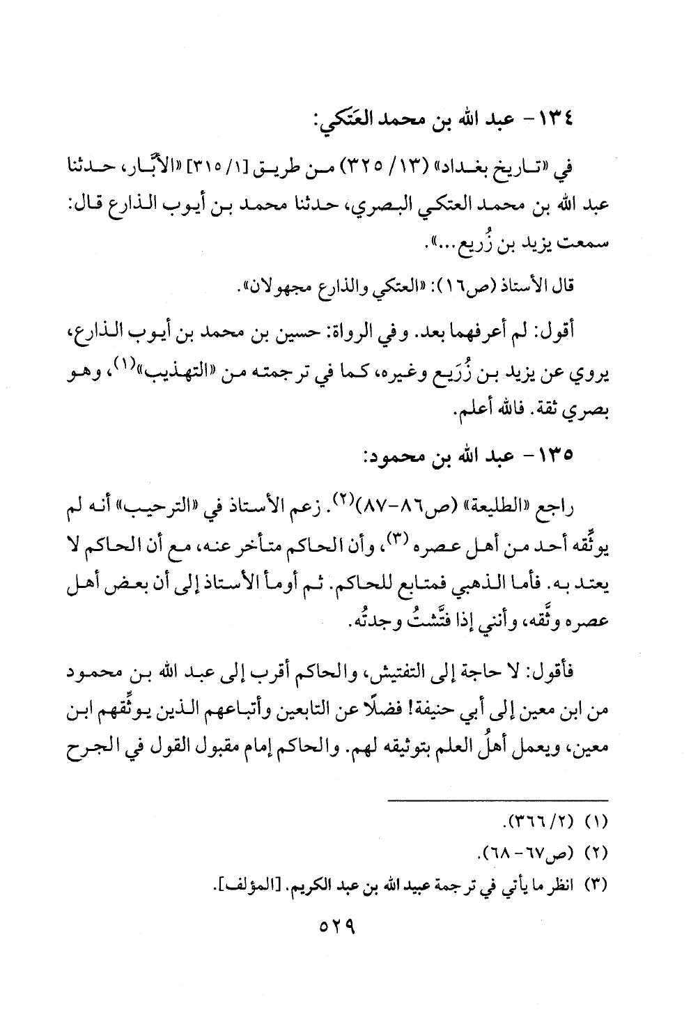 راجع «الطليعة» (ص ٨٦ - ٨٧) (¬٢). زعم الأستاذ في «الترحيب» أنه لم يوثِّقه أحد من أهل عصره (¬٣)، وأن الحاكم متأخر عنه، مع أن الحاكم لا يعتد به. فأما الذهبي فمتابع للحاكم. ثم أومأ الأستاذ إلى أن بعض أهل عصره وثَّقه، وأنني إذا فتَّشتُ وجدتُه.