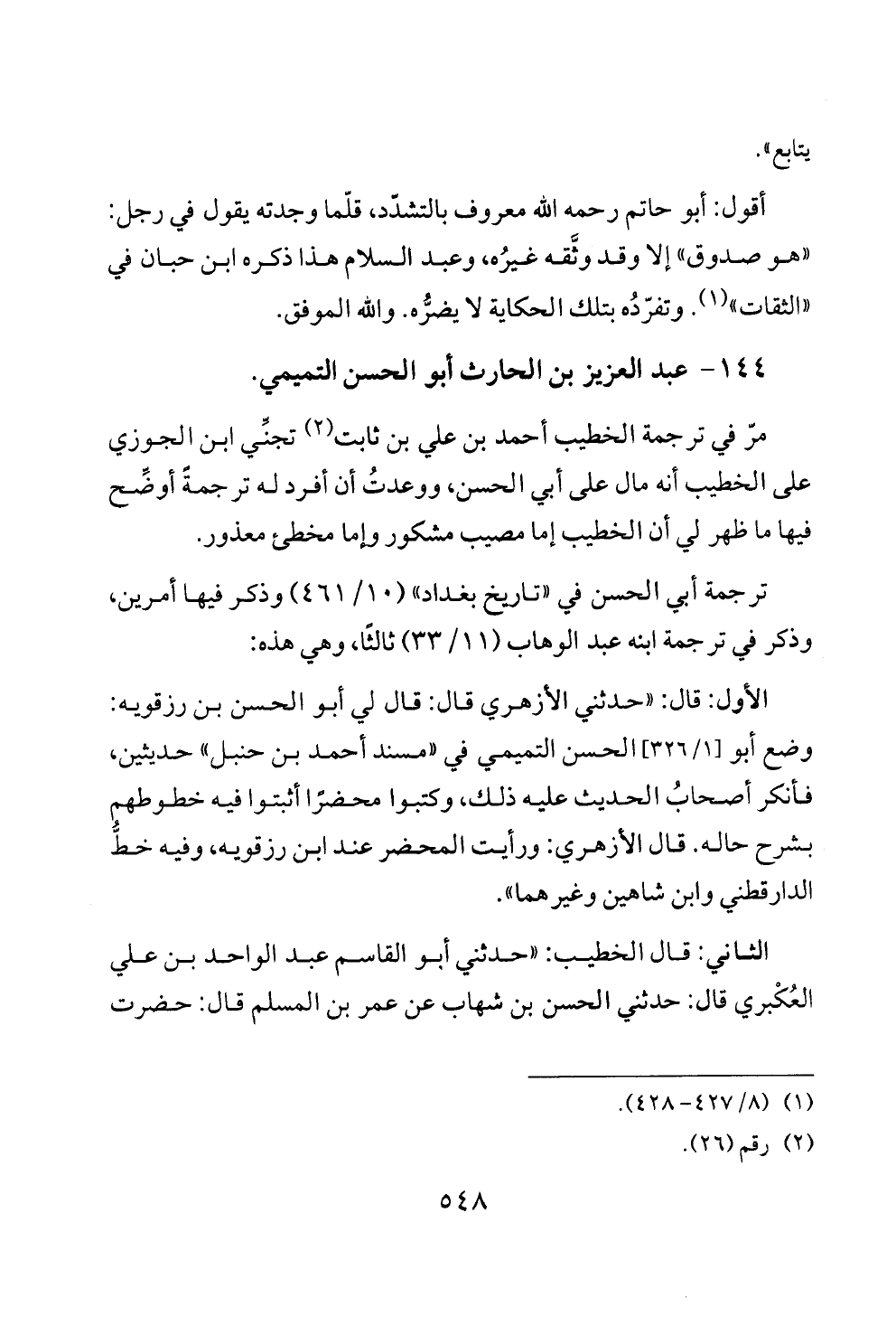 ١٤٤ - عبد العزيز بن الحارث أبو الحسن التميمي.