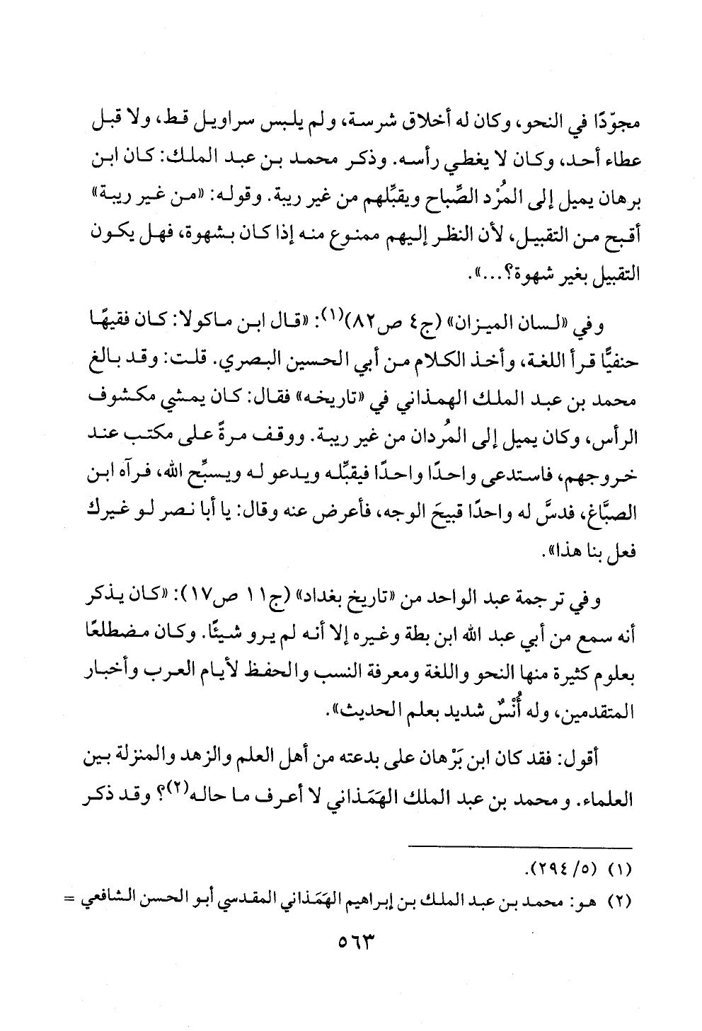 أقول: فقد كان ابن بَرْهان على بدعته من أهل العلم والزهد والمنزلة بين العلماء. ومحمد بن عبد الملك الهَمَذاني لا أعرف ما حاله (¬٢)؟ وقد ذكر