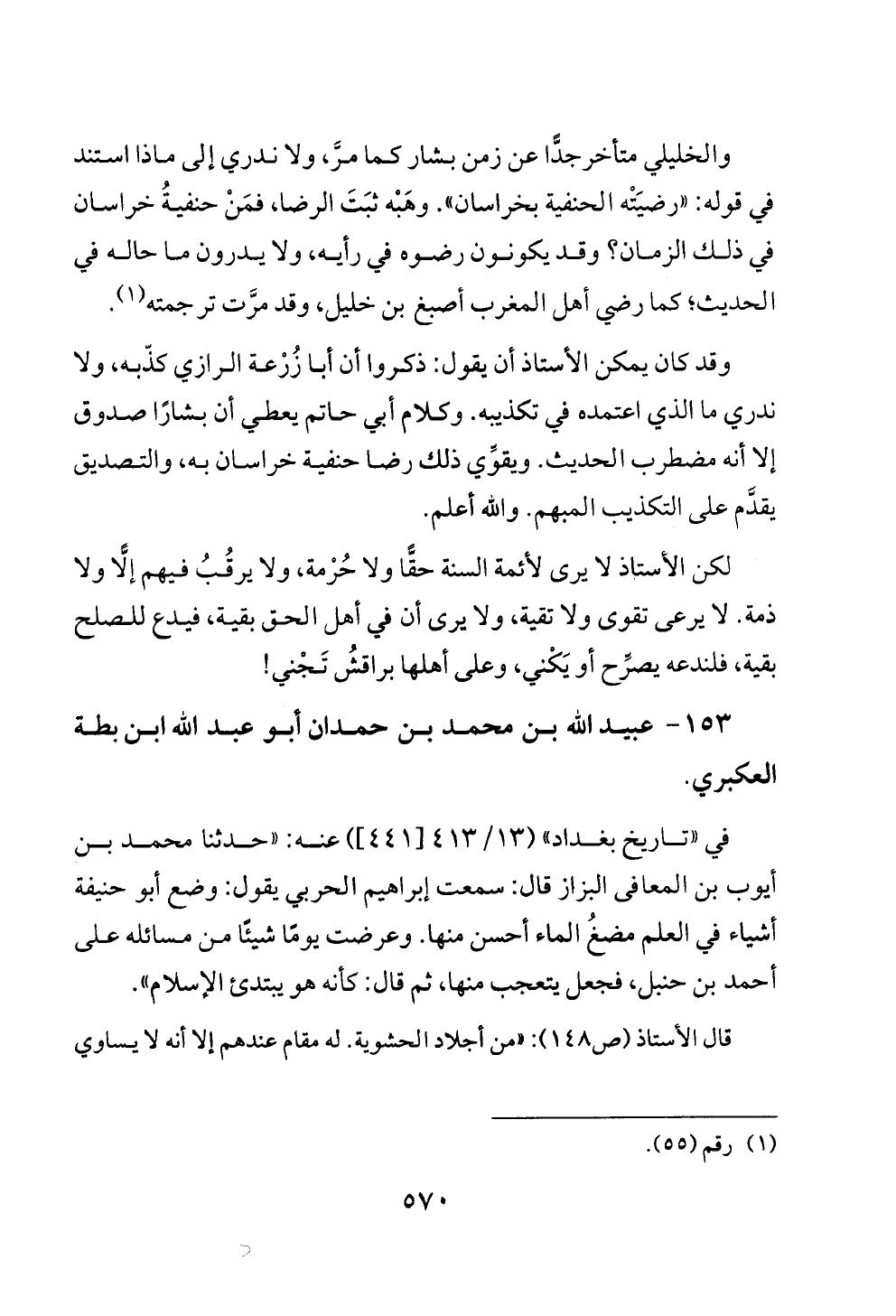 ١٥٣ - عبيد الله بن محمد بن حمدان أبو عبد الله ابن بطة العكبري.