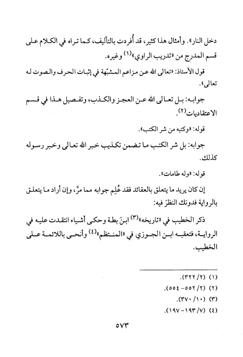 قول الأستاذ: «تعالى الله عن مزاعم المشبّهة في إثبات الحرف والصوت له تعالى».