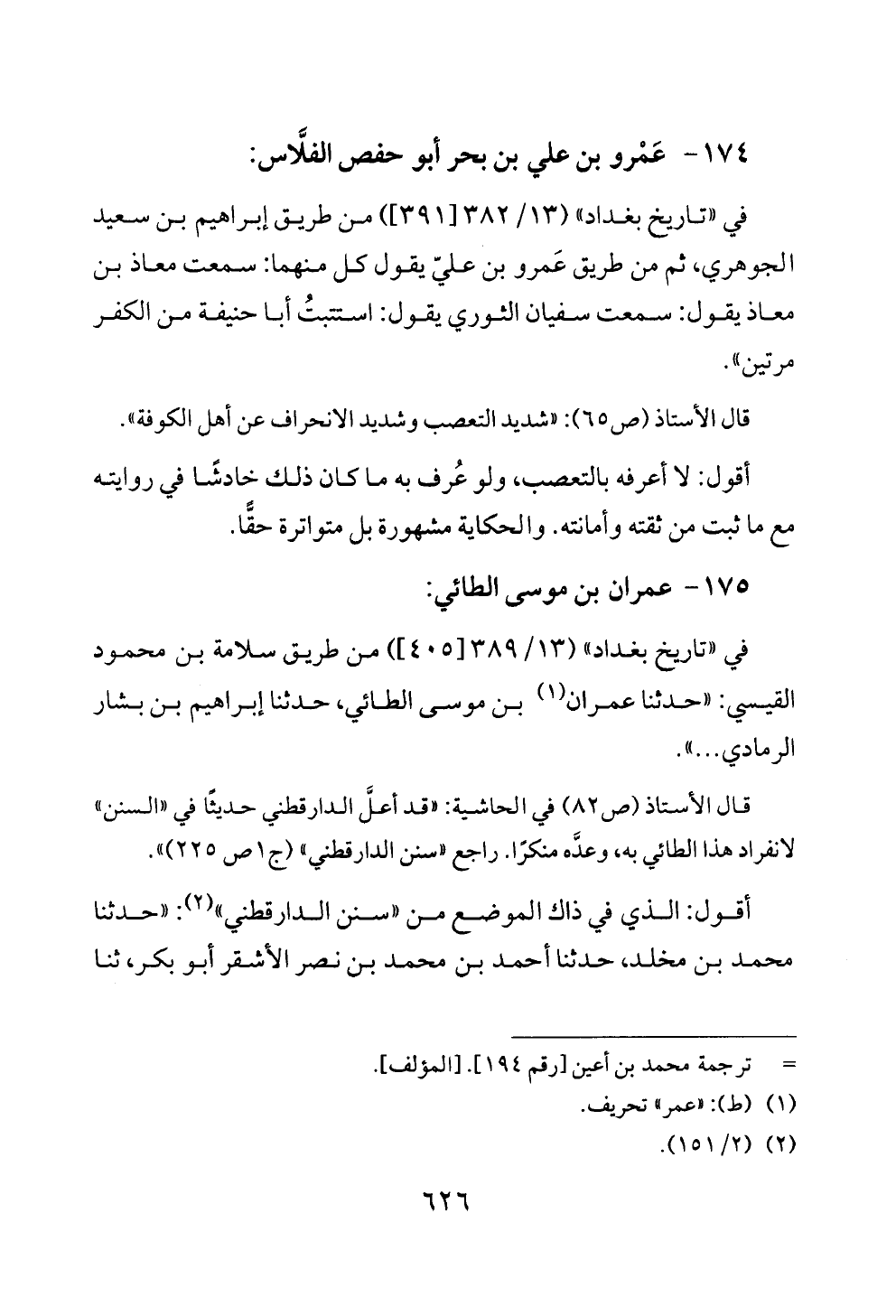 ١٧٤ - عَمْرو بن علي بن بحر أبو حفص الفلَّاس: