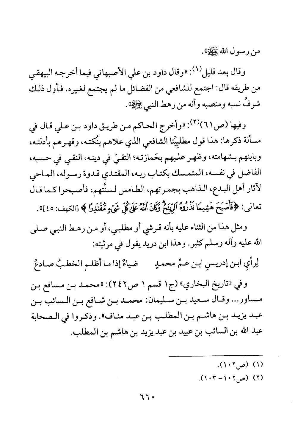 ومثل هذا من الثناء عليه بأنه قرشي أو مطلبي، أو من رهط النبي صلى الله عليه وآله وسلم كثير. وهذا ابن دريد يقول في مرثيته: