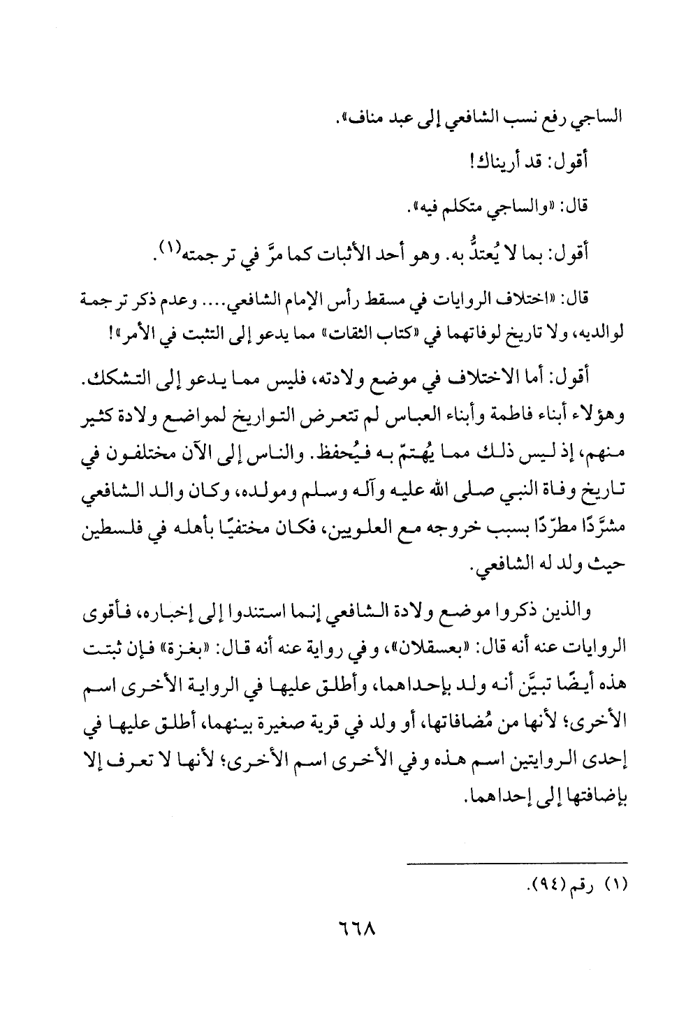 الساجي رفع نسب الشافعي إلى عبد مناف».