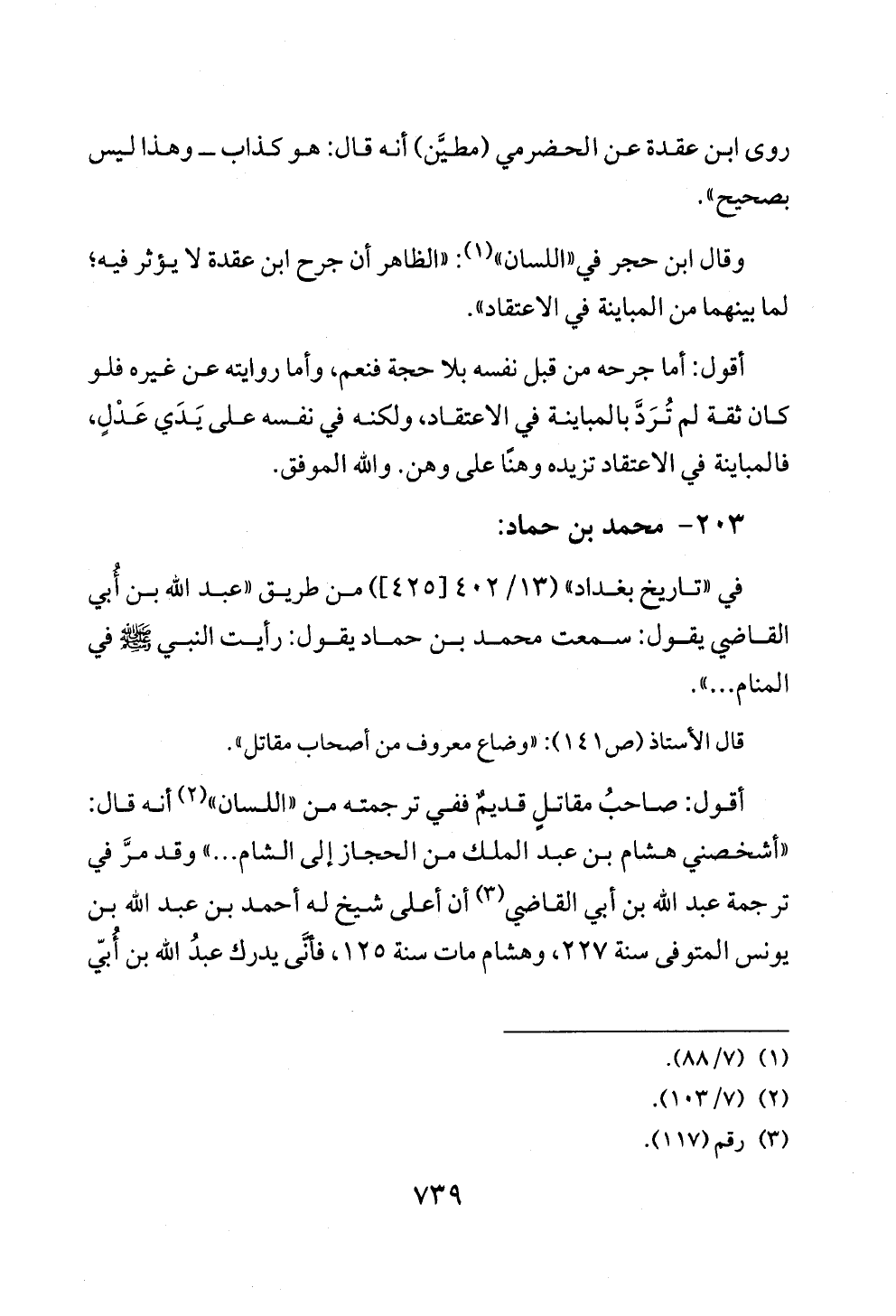 في «تاريخ بغداد» (١٣/ ٤٠٢ [٤٢٥]) من طريق «عبد الله بن أُبي القاضي يقول: سمعت محمد بن حماد يقول: رأيت النبي - صلى الله عليه وسلم - في المنام ... ».