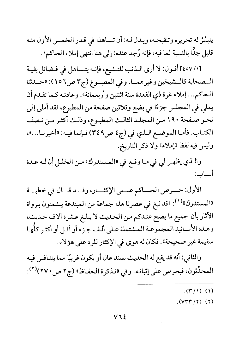والذي يظهر لي في ما وقع في «المستدرك» من الخلل أن له عدة أسباب: