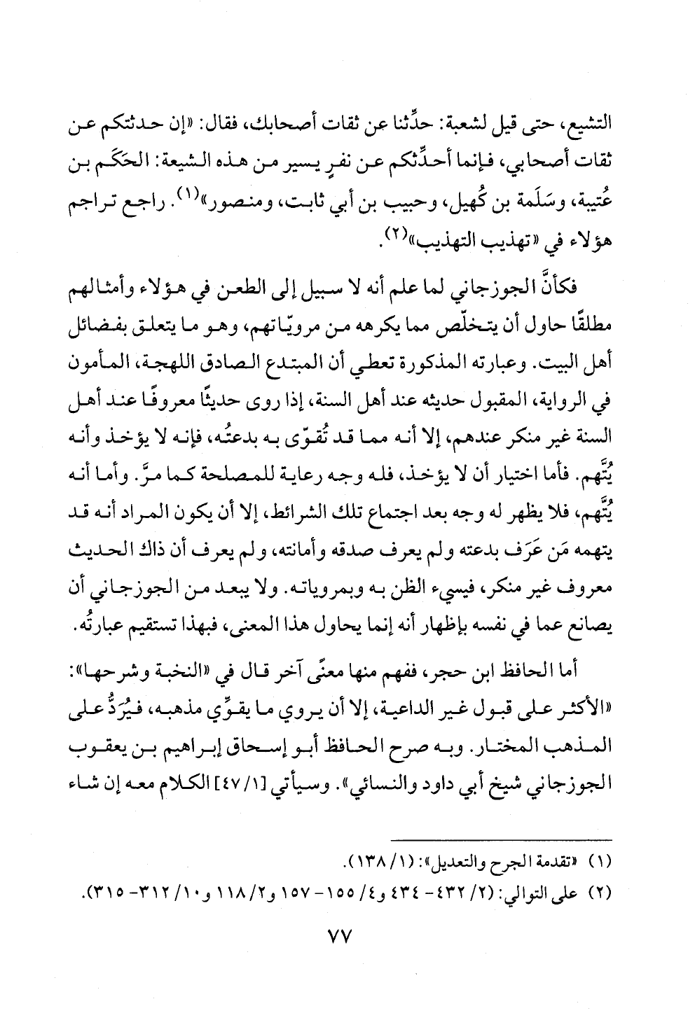التشيع، حتى قيل لشعبة: حدِّثنا عن ثقات أصحابك، فقال: "إن حدثتكم عن ثقات أصحابي، فإنما أحدِّثكم عن نفرٍ يسير من هذه الشيعة: الحَكَم بن عُتيبة، وسَلَمة بن كُهيل، وحبيب بن أبي ثابت، ومنصور" (¬١). راجع تراجم هؤلاء في "تهذيب التهذيب" (¬٢).