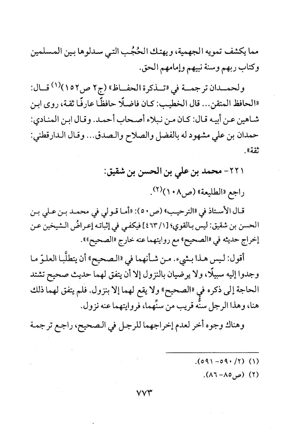 ولحمدان ترجمة في «تذكرة الحفاظ» (ج ٢ ص ١٥٢) (¬١) قال: «الحافظ المتقن ... قال الخطيب: كان فاضلًا حافظًا عارفًا ثقة، روى ابن شاهين عن أبيه قال: كان من نبلاء أصحاب أحمد. وقال ابن المنادي: حمدان بن علي مشهود له بالفضل والصلاح والصدق ... وقال الدارقطني: ثقة».