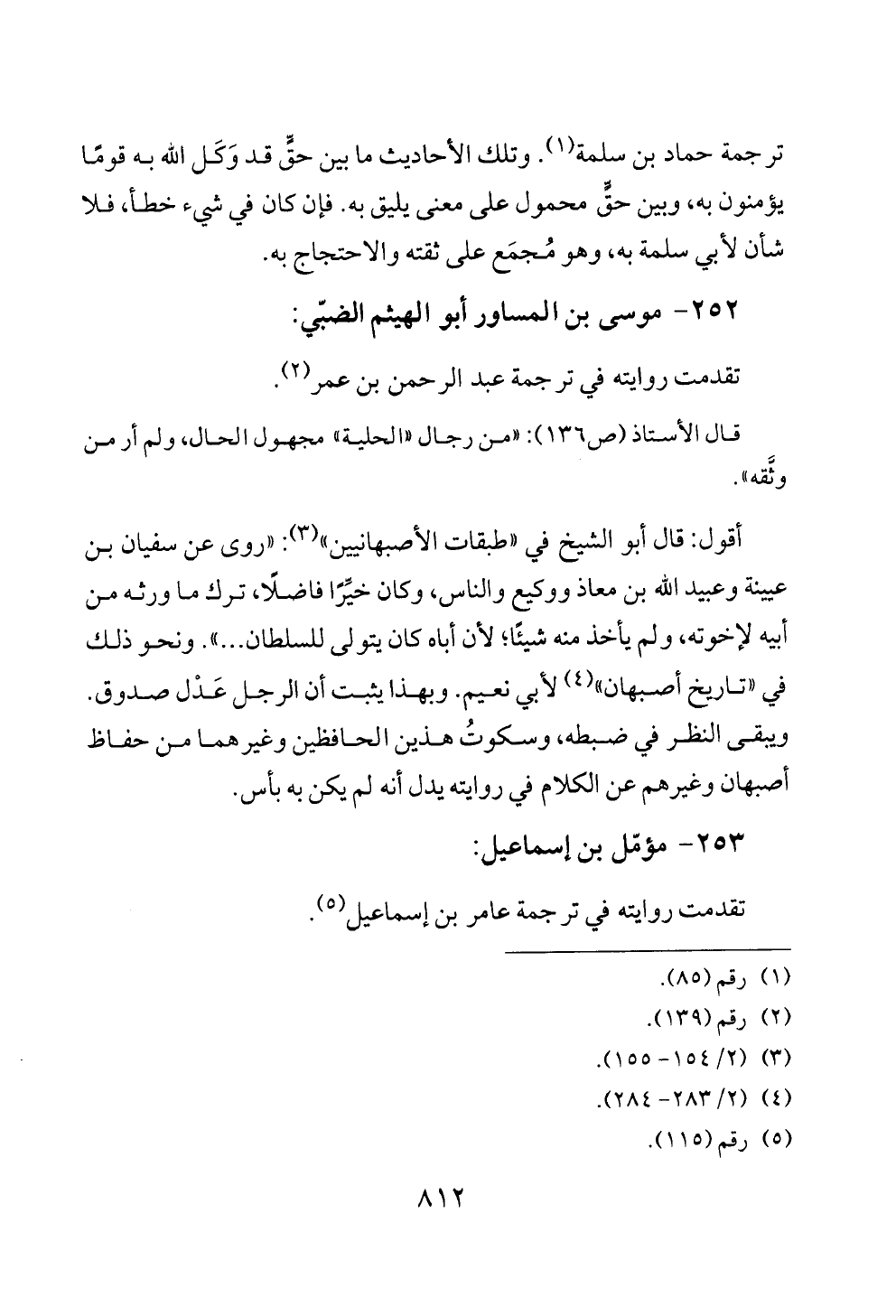 ترجمة حماد بن سلمة (¬١). وتلك الأحاديث ما بين حقٍّ قد وَكَل الله به قومًا يؤمنون به، وبين حقٍّ محمول على معنى يليق به. فإن كان في شيء خطأ، فلا شأن لأبي سلمة به، وهو مُجمَع على ثقته والاحتجاج به.