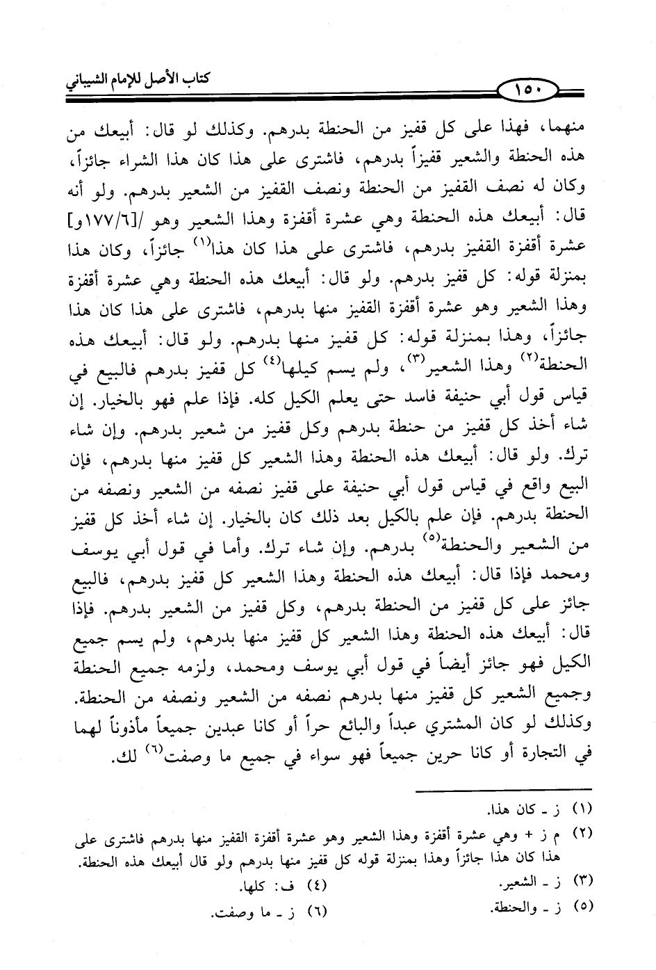 (¬2) م ز + وهي عشرة أقفزة وهذا الشعير وهو عشرة أقفزة القفيز منها بدرهم فاشترى على هذا كان هذا جائزاً وهذا بمنزلة قوله كل قفيز منها بدرهم ولو قال أبيعك هذه الحنطة.