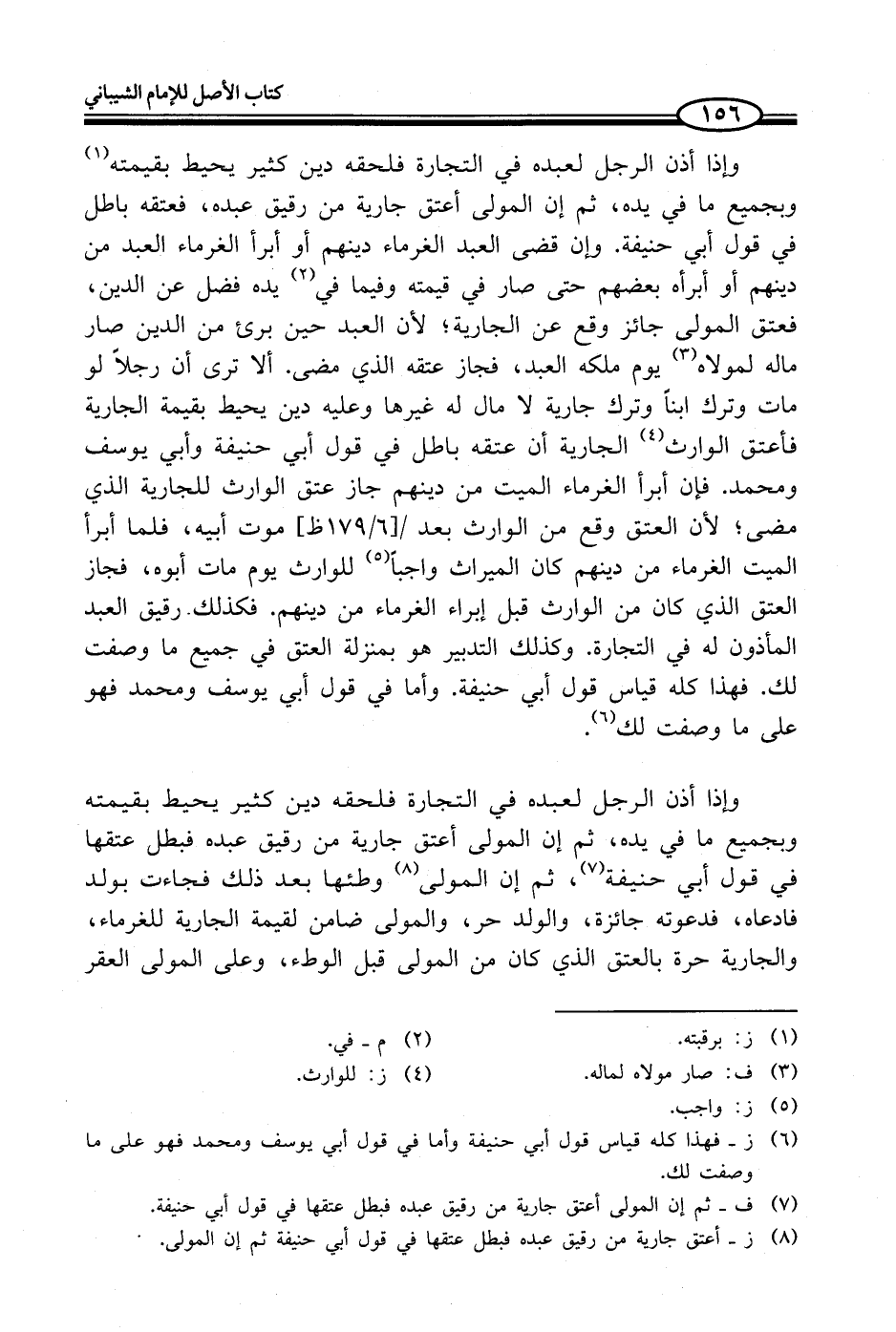 (¬6) ز - فهذا كله قياس قول أبي حنيفة وأما في قول أبي يوسف ومحمد فهو على ما وصفت لك.