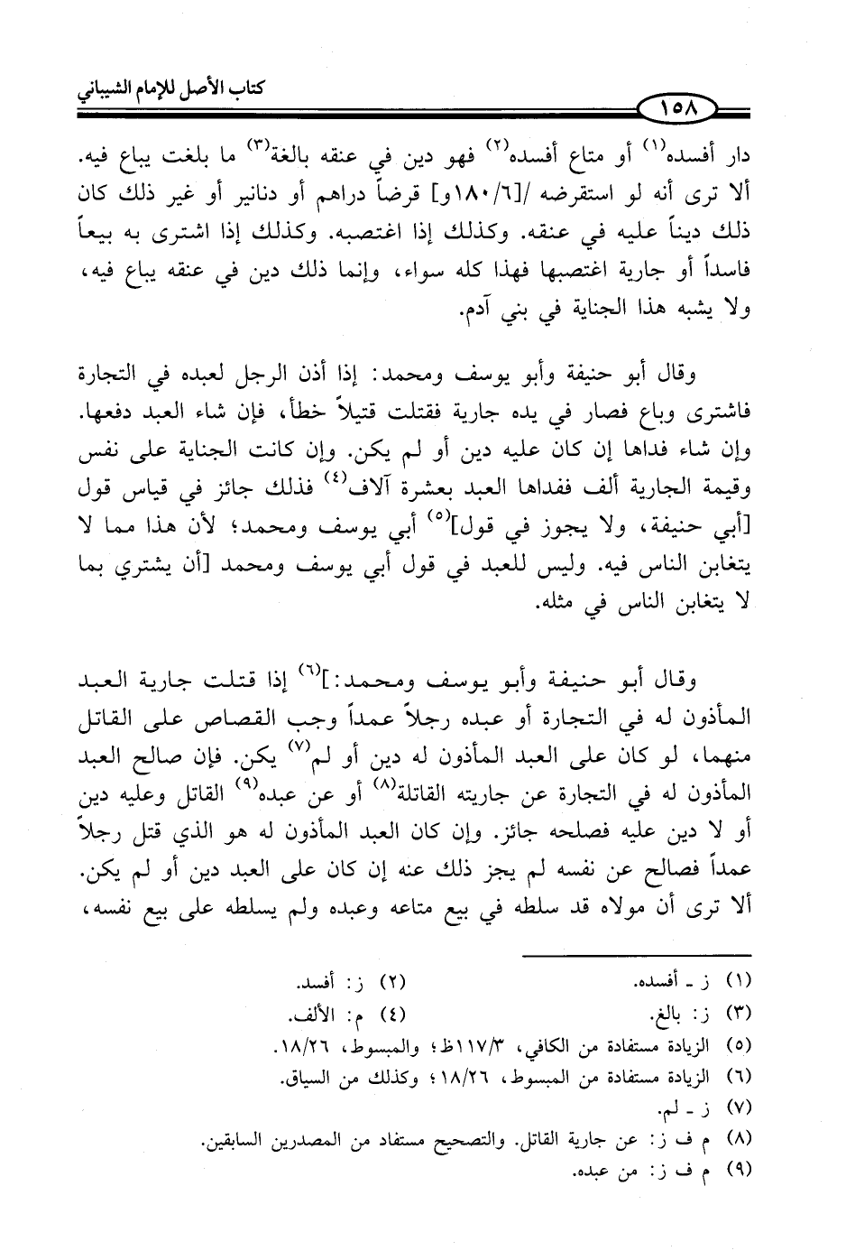 (¬6) الزيادة مستفادة من المبسوط، 26/ 18؛ وكذلك من السياق.
