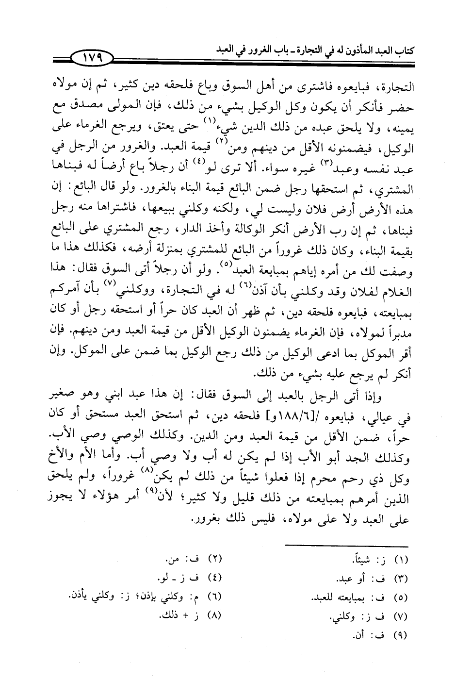 وإذا أتى الرجل بالعبد إلى السوق فقال: إن هذا عبد ابني وهو صغير في عيالي، فبايعوه فلحقه دين، ثم استحق العبد مستحق أو كان حراً، ضمن الأقل من قيمة العبد ومن الدين. وكذلك الوصي وصي الأب. وكذلك الجد أبو الأب إذا لم يكن له أب ولا وصي أبي. وأما الأم والأخ وكل ذي رحم محرم إذا فعلوا شيئاً من ذلك لم يكن (¬8) غروراً، ولم يلحق الذين أمرهم بمبايعته من ذلك قليل ولا كثير؛ لأن (¬9) أمر هؤلاء لا يجوز على العبد ولا على مولاه، فليس ذلك بغرور.