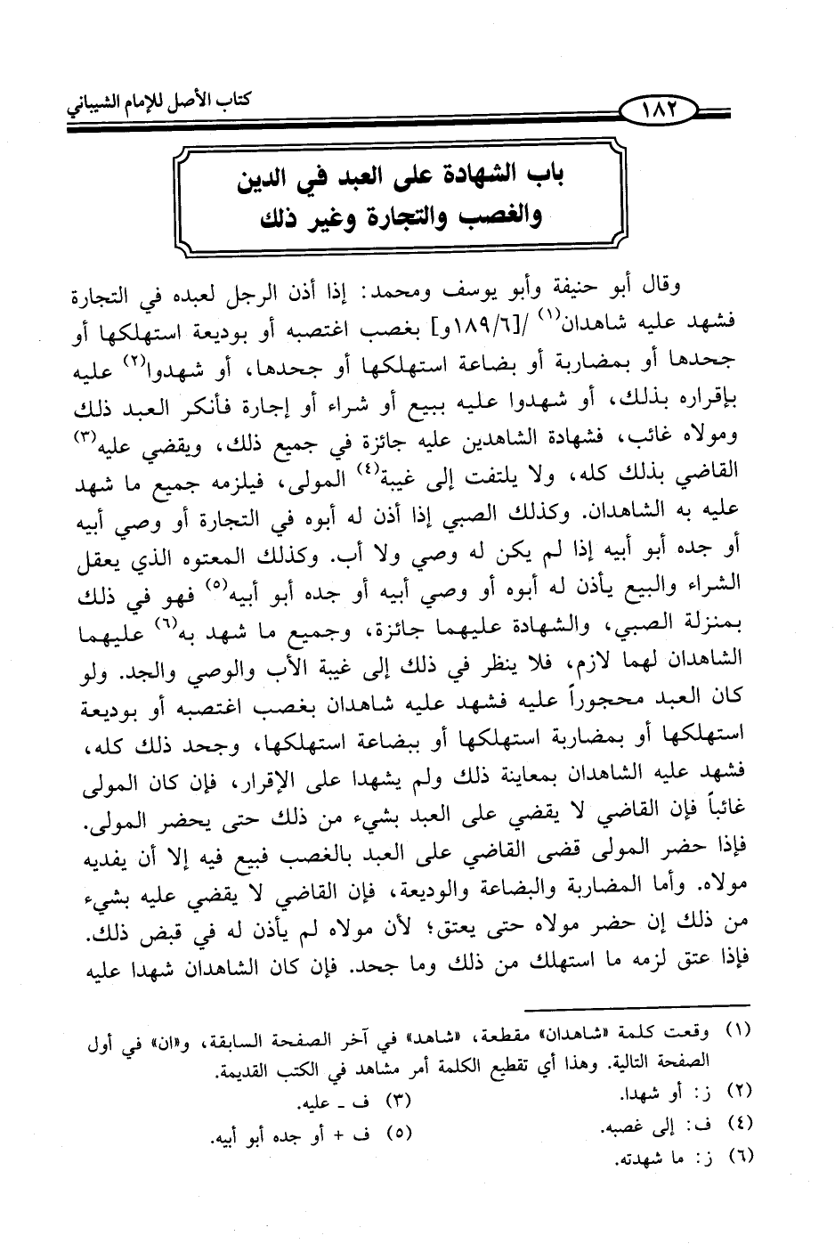 (¬1) وقعت كلمة "شاهدان" مقطعة، "شاهد" في آخر الصفحة السابقة، و"ان" في أول الصفحة التالية. وهذا أي تقطيع الكلمة أمر مشاهد في الكتب القديمة.