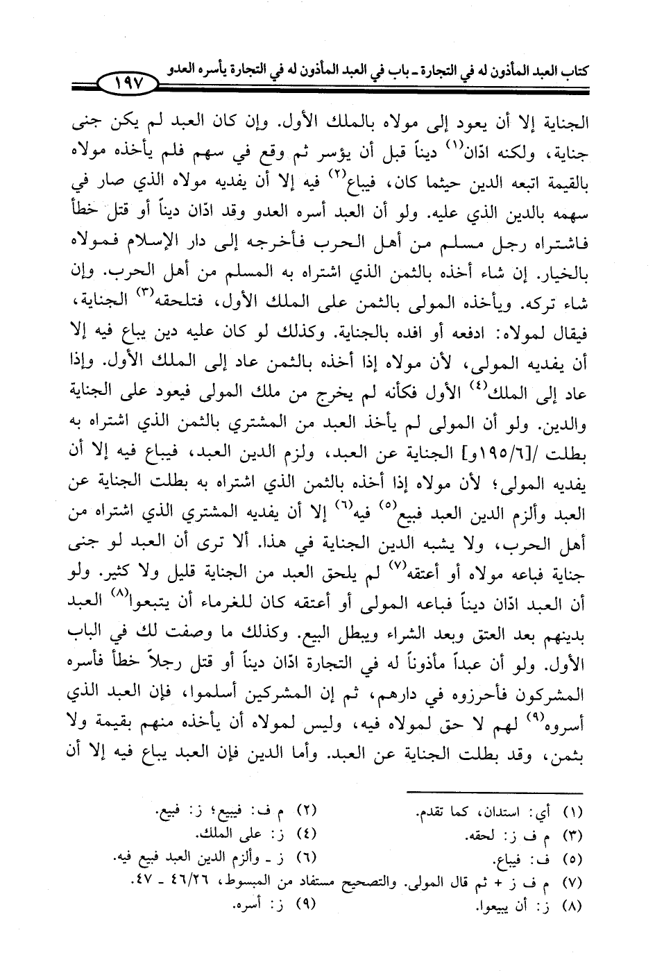 (¬7) م ف ز + ثم قال المولى. والتصحيح مستفاد من المبسوط، 26/ 46 - 47.
