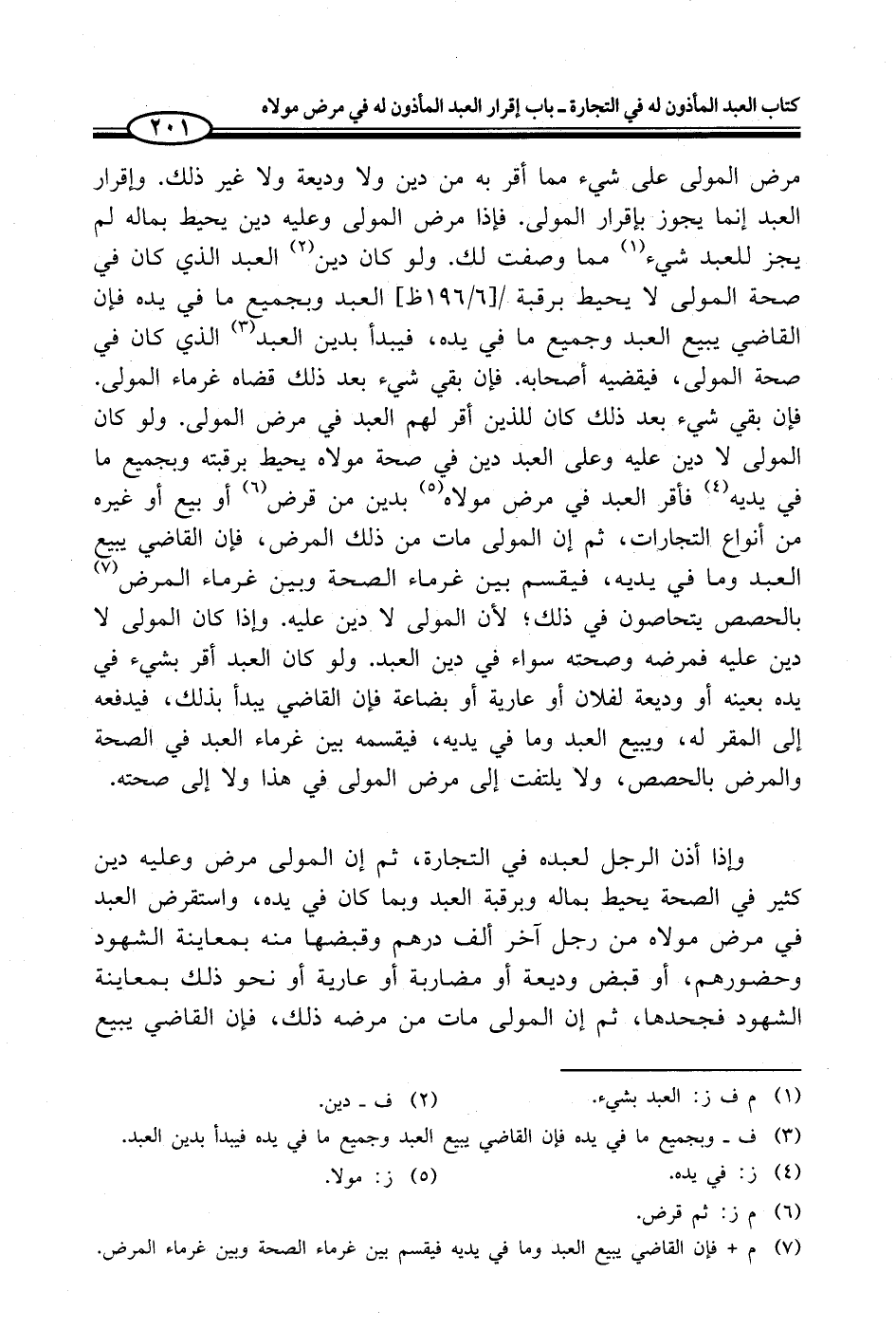 (¬7) م + فإن القاضي يبيع العبد وما في يديه فيقسم بين غرماء الصحة وبين غرماء المرض.