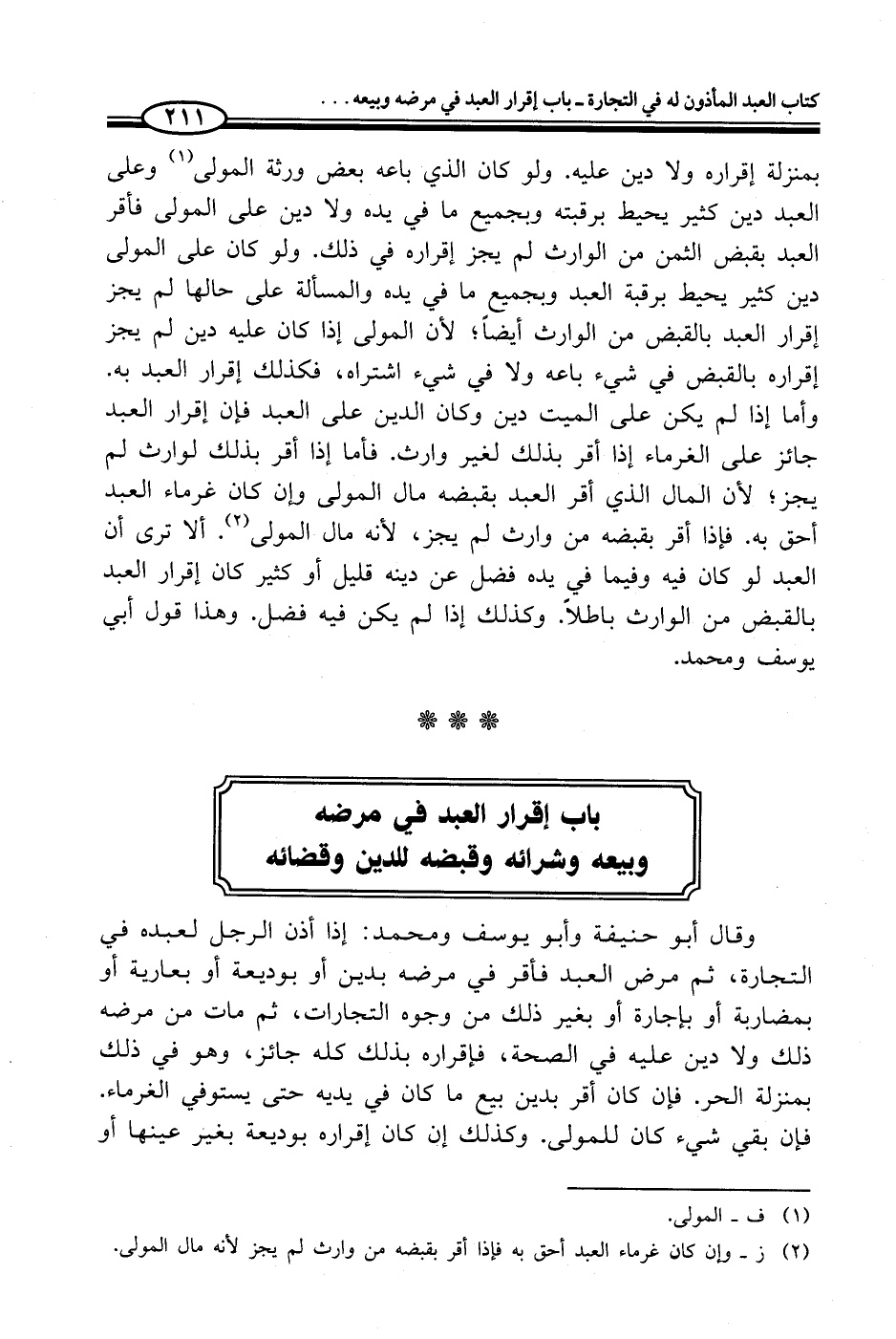 (¬2) ز - وإن كان غرماء العبد أحق به فإذا أقر بقبضه من وارث لم يجز لأنه مال المولى.