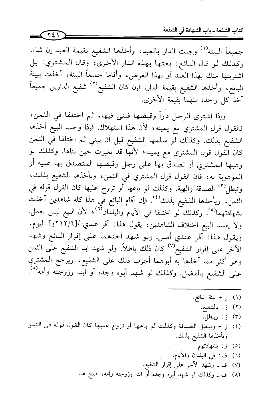 (¬7) ف - وشهد الآخر على إقرار الشفيع.