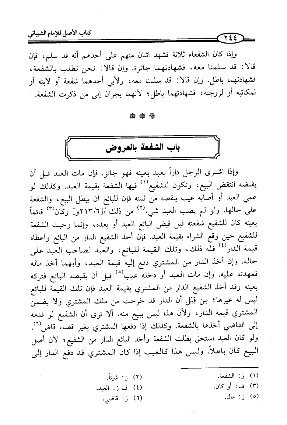 وإذا كان الشفعاء ثلاثة فشهد اثنان منهم على أحدهم أنه قد سلم، فإن قالا: قد سلمنا معه، فشهادتهما جائزة. وإن قالا: نحن نطلب بالشفعة، فشمهادتهما باطل. وإن قالا: قد سلمنا معه، ولأبي أحدهما شفعة أو لابنه أو لمكاتبه أو لزوجته، فشهادتهما باطل؛ لأنهما يجران إلى من ذكرت الشفعة.