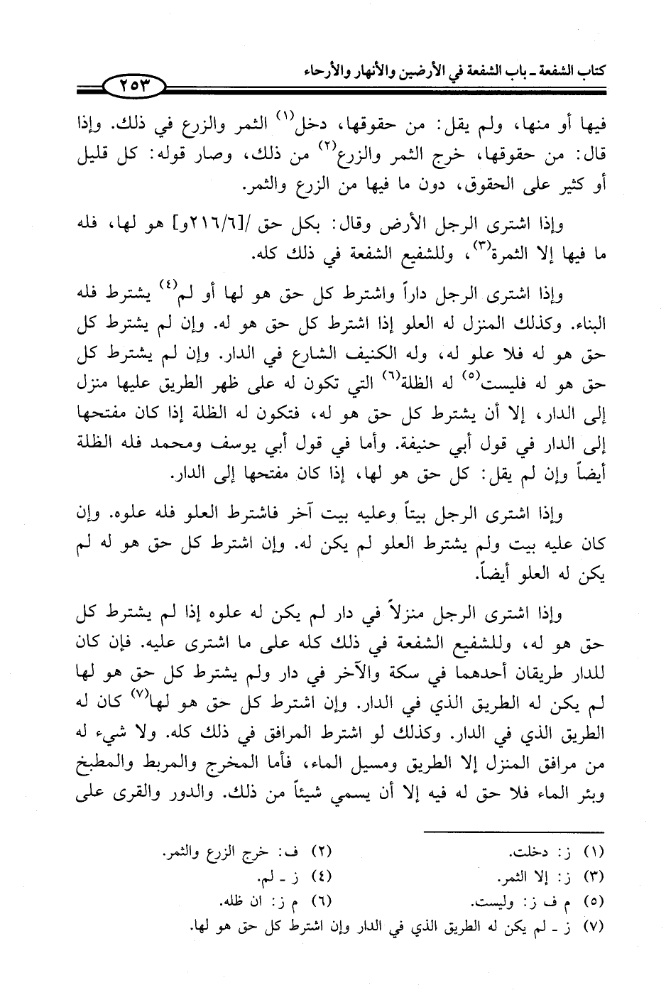 (¬7) ز - لم يكن له الطريق الذي في الدار وإن اشترط كل حق هو لها.