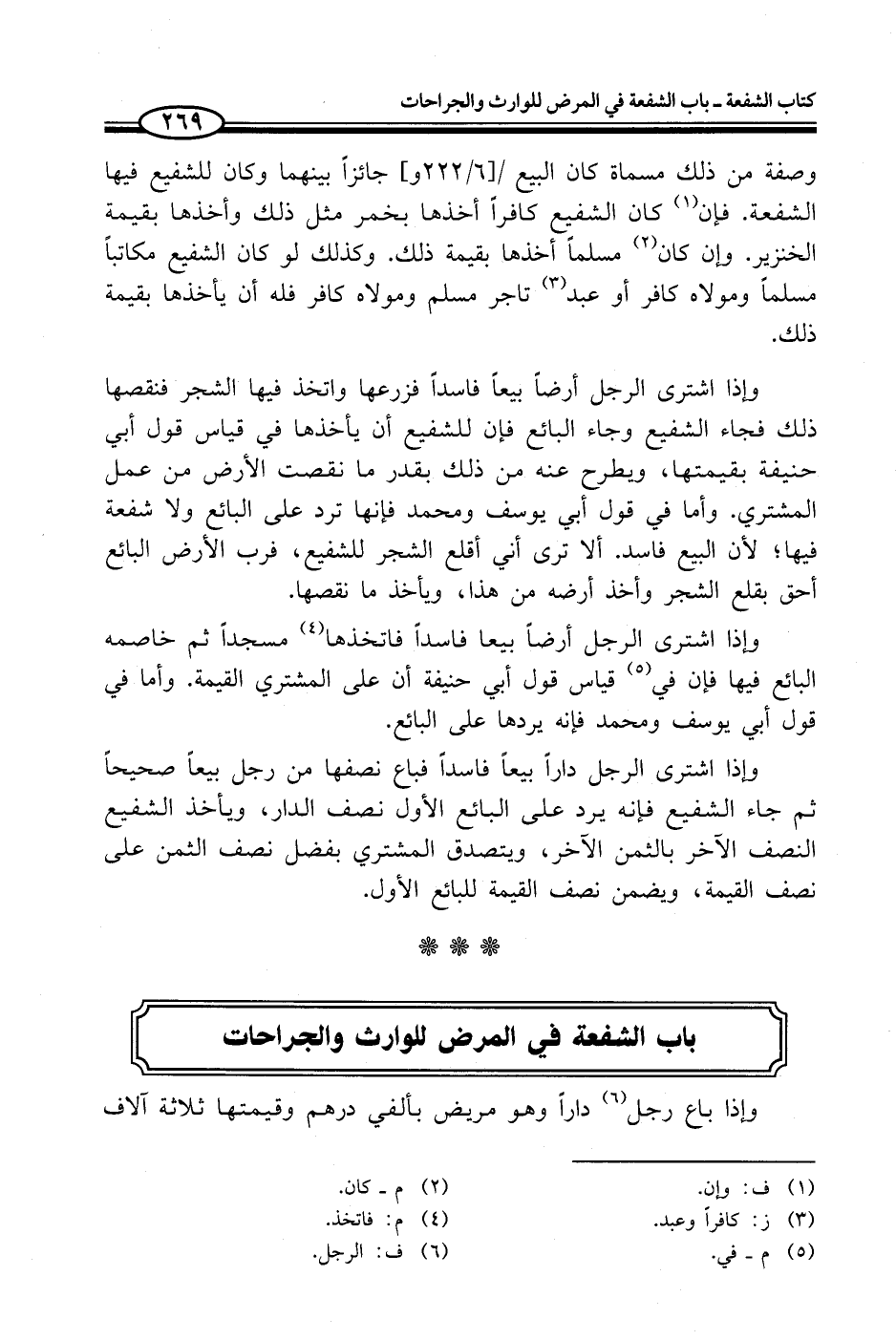 باب الشفعة في المرض للوارث والجراحات
