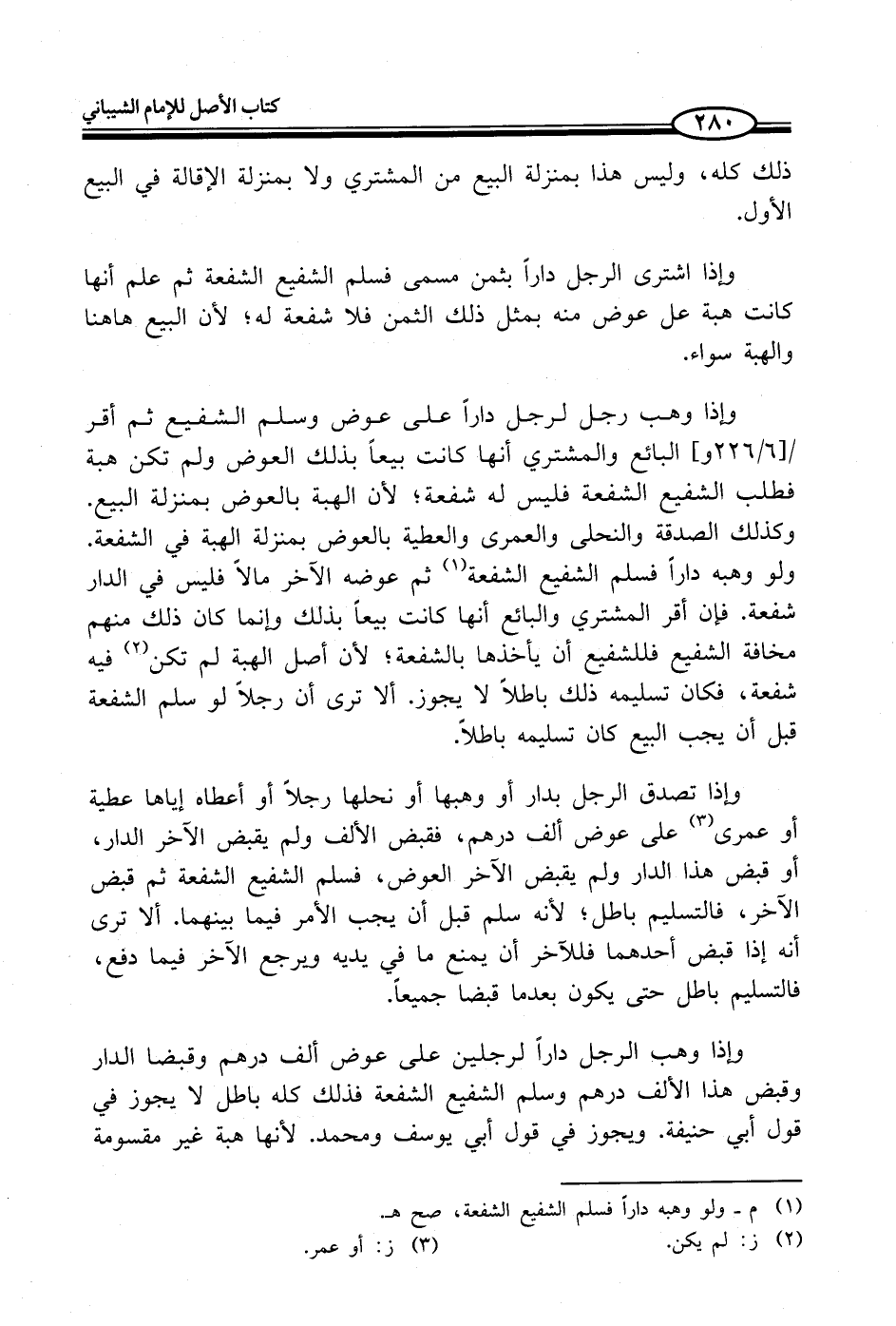 وإذا تصدق الرجل بدار أو وهبها أو نحلها رجلاً أو أعطاه إياها عطية أو عمرى (¬3) على عوض ألف درهم، فقبض الألف ولم يقبض الآخر الدار، أو قبض هذا الدار ولم يقبض الآخر العوض، فسلم الشفيع الشفعة ثم قبض الآخر، فالتسليم باطل؛ لأنه سلم قبل أن يجب الأمر فيما بينهما. ألا ترى أنه إذا قبض أحدهما فللآخر أن يمنع ما في يديه ويرجع الآخر فيما دفع، فالتسليم باطل حتى يكون بعدما قبضا جميعاً.