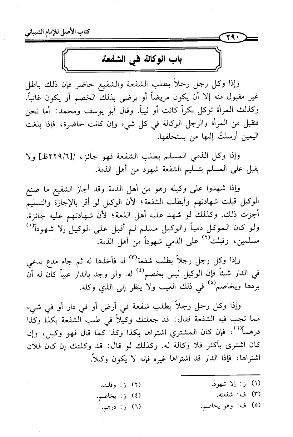 وإذا شهدوا على وكيله وهو من أهل الذمة وقد أجاز الشفيع ما صنع الوكيل قبلت شهادتهم وأبطلت الشفعة؛ لأن الوكيل لو أقر بالإجازة والتسليم أجزت ذلك. وكذلك لو شهد عليه أهل الذمة؛ لأن شهادتهم عليه جائزة. ولو كان الموكل ذمياً والوكيل مسلم لم أقبل على الوكيل إلا شهوداً (¬1) مسلمين، وقبلت (¬2) على الذمي شهوداً من أهل الذمة.