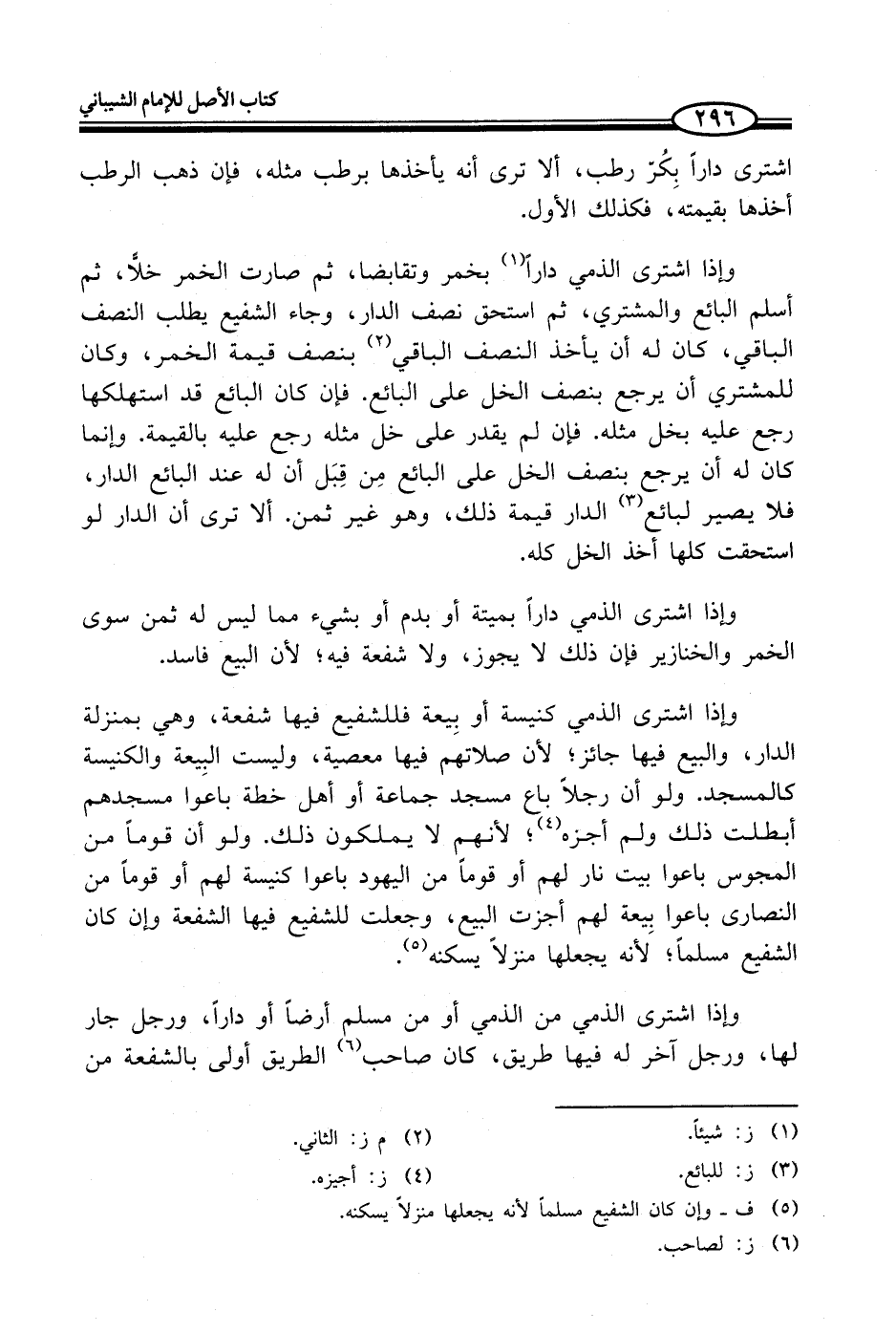 وإذا اشترى الذمي كنيسة أو بِيعة فللشفيع فيها شفعة، وهي بمنزلة الدار، والبيع فيهما جائز؛ لأن صلاتهم فيها معصية، وليست البِيعة والكنيسة كالمسجد. ولو أن رجلاً باع مسجد جماعة أو أهل خطة باعوا مسجدهم أبطلت ذلك ولم أجزه (¬4)؛ لأنهم لا يملكون ذلك. ولو أن قوماً من المجوس باعوا بيت نار لهم أو قوماً من اليهود باعوا كنيسة لهم أو قوماً من النصارى باعوا بِيعة لهم أجزت البيع، وجعلت للشفيع فيها الشفعة وإن كان الشفيع مسلماً؛ لأنه يجعلها منزلاً يسكنه (¬5).
