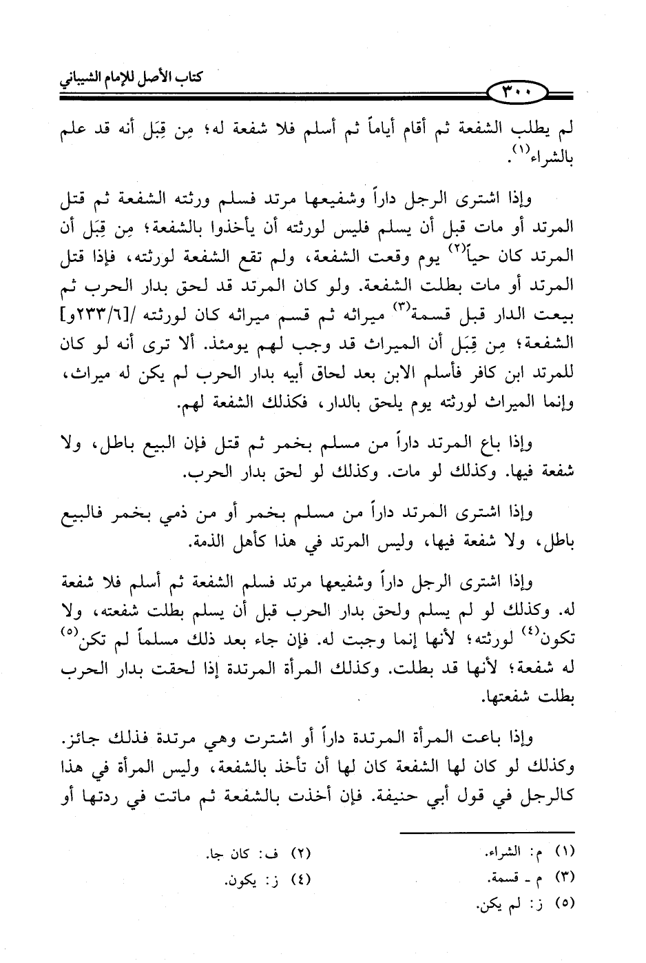 وإذا اشترى الرجل داراً وشفيعها مرتد فسلم الشفعة ثم أسلم فلا شفعة له. وكذلك لو لم يسلم ولحق بدار الحرب قبل أن يسلم بطلت شفعته، ولا تكون (¬4) لورثته؛ لأنها إنما وجبت له. فإن جاء بعد ذلك مسلماً لم تكن (¬5) له شفعة؛ لأنها قد بطلت. وكذلك المرأة المرتدة إذا لحقت بدار الحرب بطلت شفعتها.
