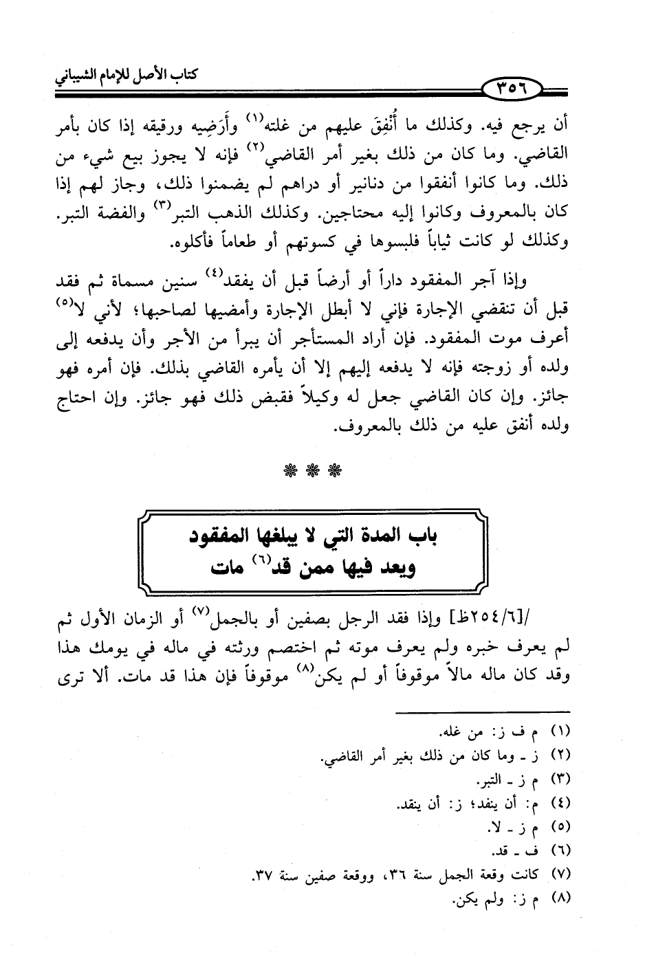وإذا فقد الرجل بصفين أو بالجمل (¬7) أو الزمان الأول ثم لم يعرف خبره ولم يعرف موته ثم اختصم ورثته في ماله في يومك هذا وقد كان ماله مالاً موقوفاً أو لم يكن (¬8) موقوفاً فإن هذا قد مات. ألا ترى