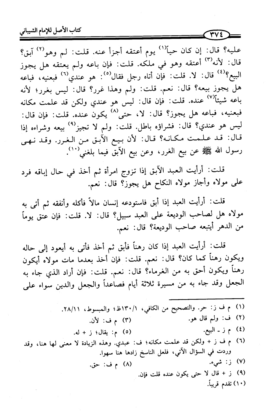 (¬1) م ف ز: حر. والتصحيح من الكافي، 1/ 130 ظ؛ والمبسوط، 11/ 28.
