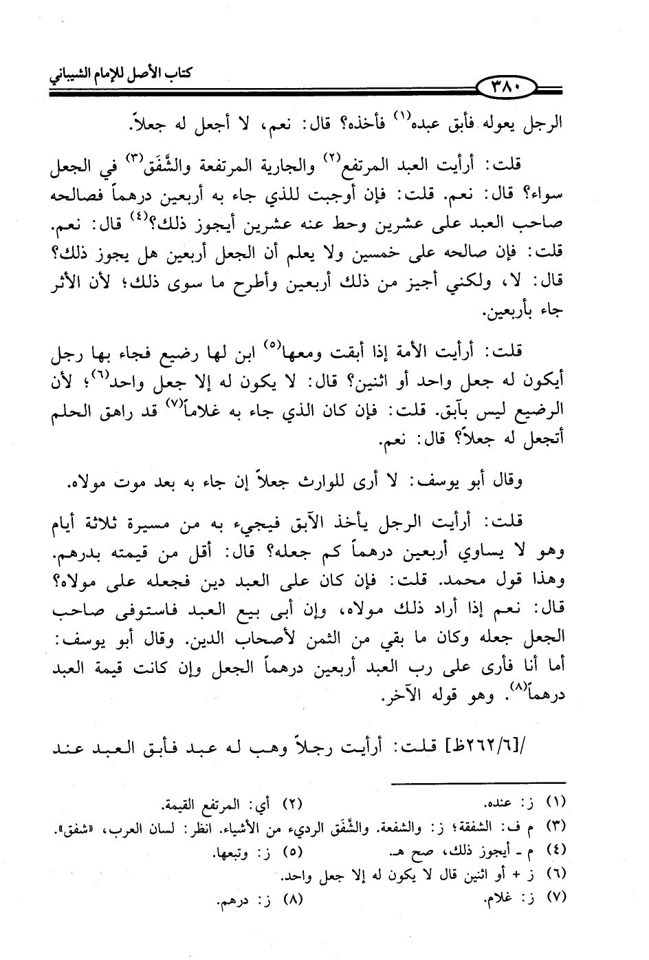 قلت: أرأيت الأمة إذا أبقت ومعها (¬5) ابن لها رضيع فجاء بها رجل أيكون له جعل واحد أو اثنين؟ قال: لا يكون له إلا جعل واحد (¬6)؛ لأن الرضيع ليس بآبق. قلت: فإن كان الذي جاء به غلاماً (¬7) قد راهق الحلم أتجعل له جعلاً؟ قال: نعم.