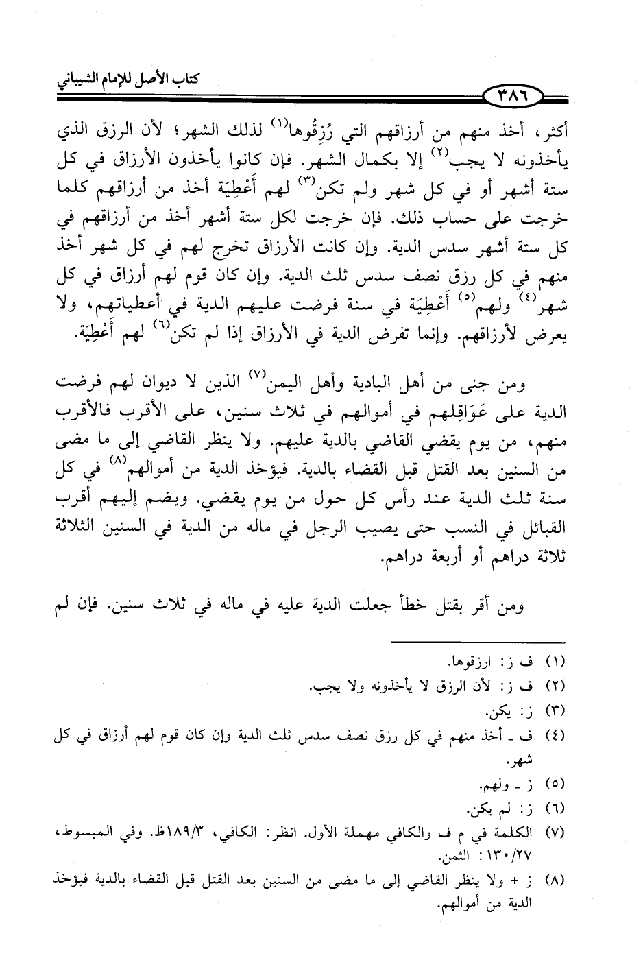 (¬4) ف - أخذ منهم في كل رزق نصف سدس ثلث الدية وإن كان قوم لهم أرزاق في كل شهر.
