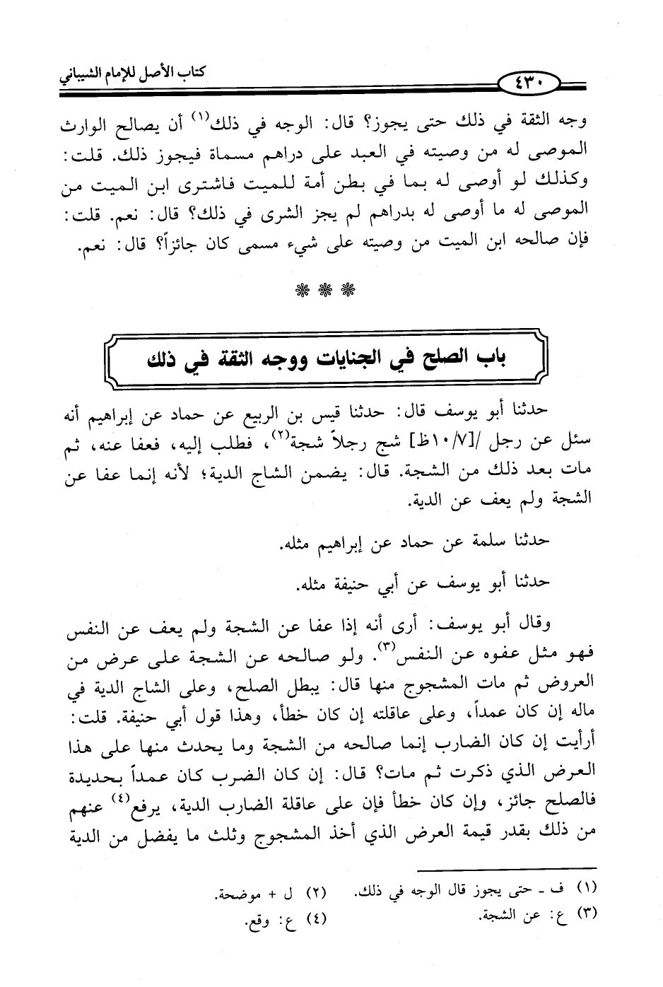 باب الصلح في الجنايات ووجه الثقة في ذلك