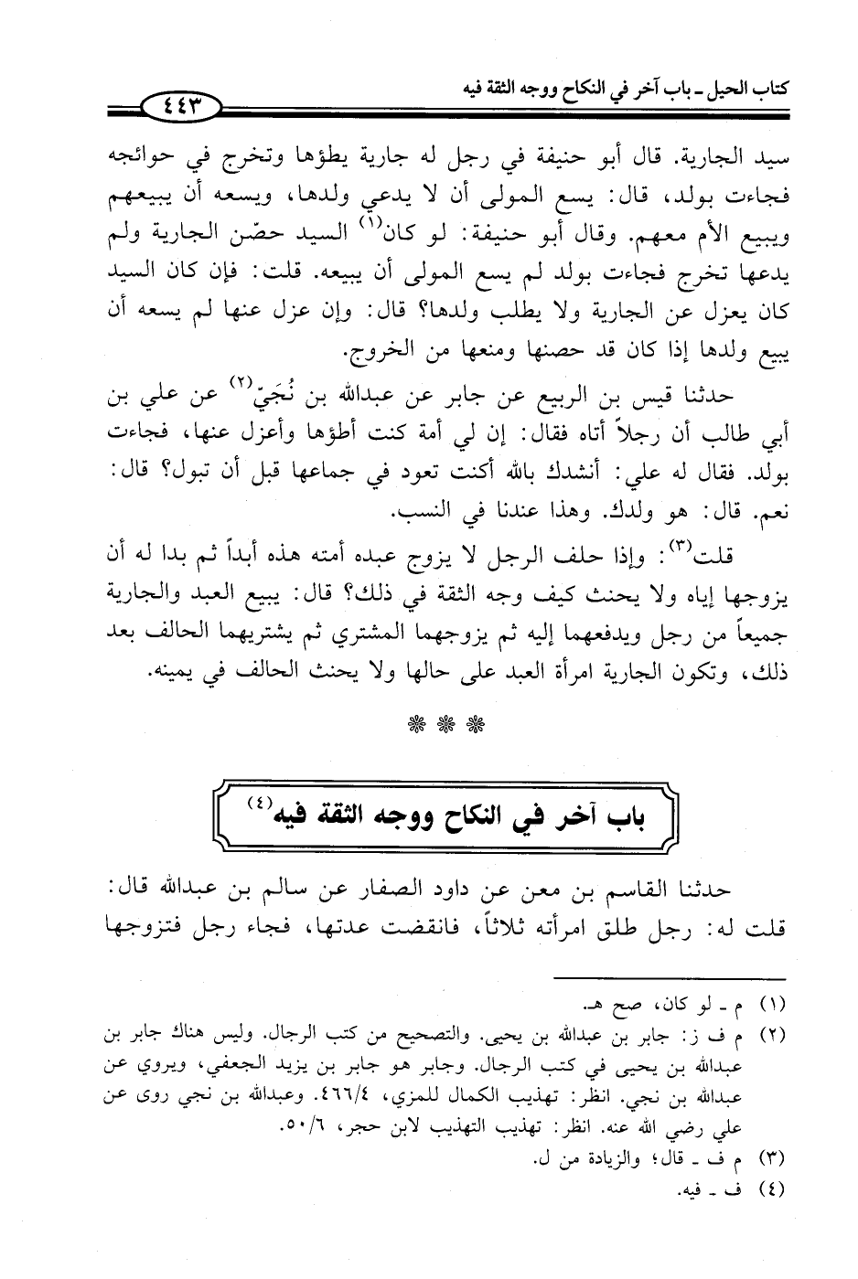 (¬2) م ف ز: جابر بن عبد الله بن يحيى. والتصحيح من كتب الرجال. وليس هناك جابر بن عبد الله بن يحيى في كتب الرجال. وجابر هو جابر بن يزيد الجعفي، ويروي عن عبد الله بن نجي. انظر: تهذيب الكمال للمزي، 4/ 466. وعبدالله بن نجي روى عن علي - رضي الله عنه -. انظر: تهذيب التهذيب لابن حجر، 6/ 50.