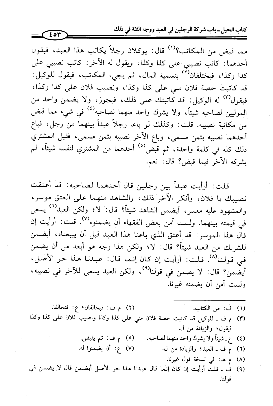 (¬3) م ف - للوكيل قد كاتبت حصة فلان مني على كذا وكذا ونصيب فلان على كذا وكذا فيقول؛ والزيادة من ل.