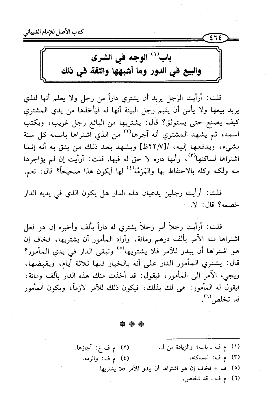 باب (¬1) الوجه في الشرى والبيع في الدور وما أشبهها والثقة في ذلك