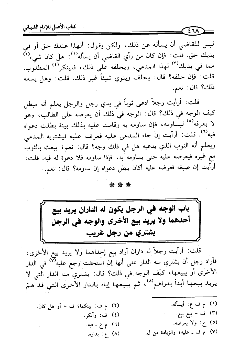 باب الوجه في الرجل يكون له الداران يريد بيع أحدهما ولا يريد بيع الأخرى والوجه فى الرجل يشتري من رجل غريب